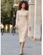 Sosandar Cream Roll Neck Cable Knit Midi Dress