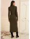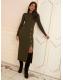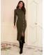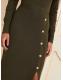 Love & Roses Olive Green Crew Neck Scallop Long Sleeve Knitted Midi Dress
