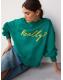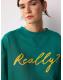 Green Graphic 'Really?' Slogan Crewneck Longsleeve Sweatshirt
