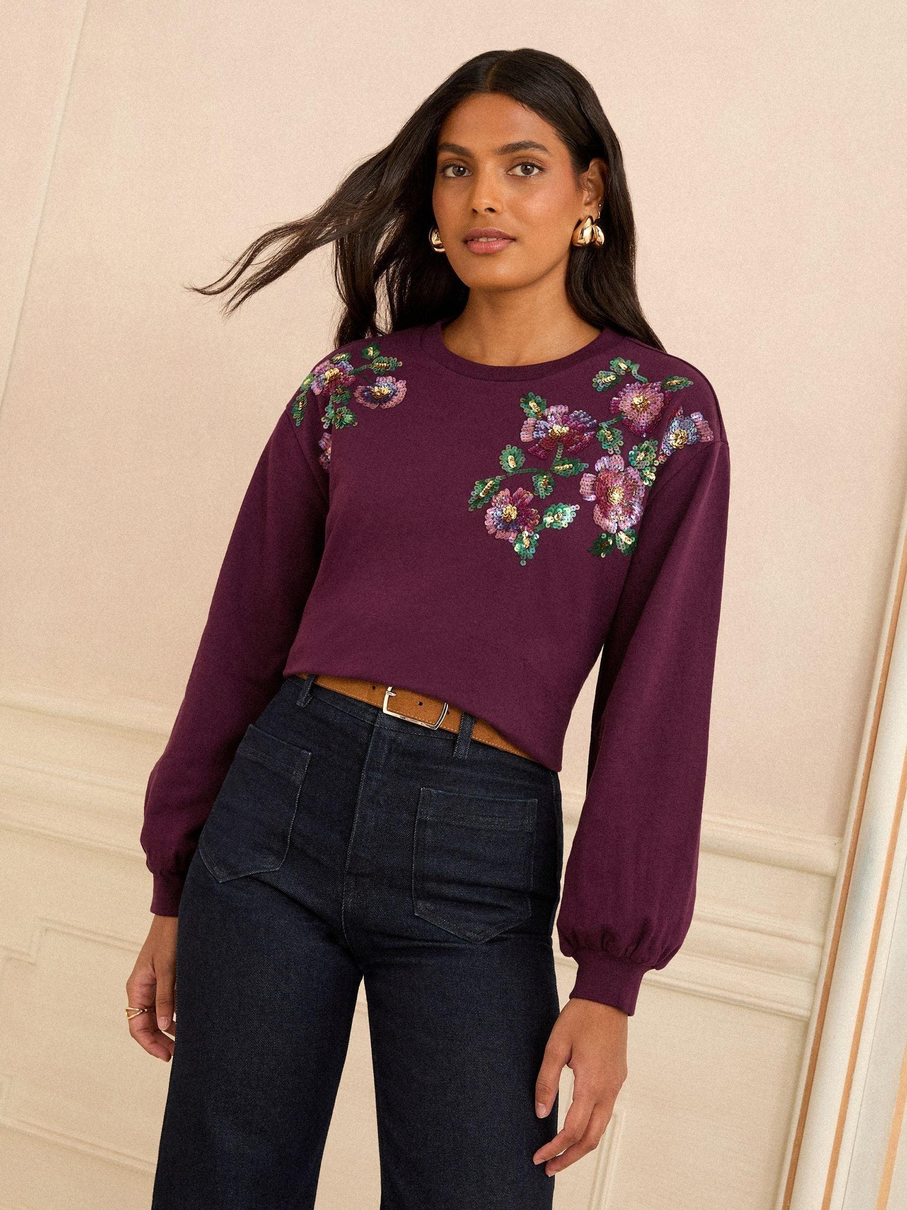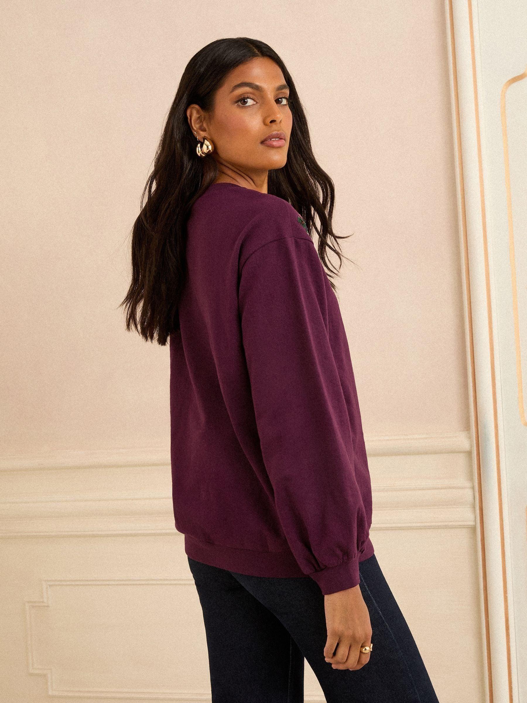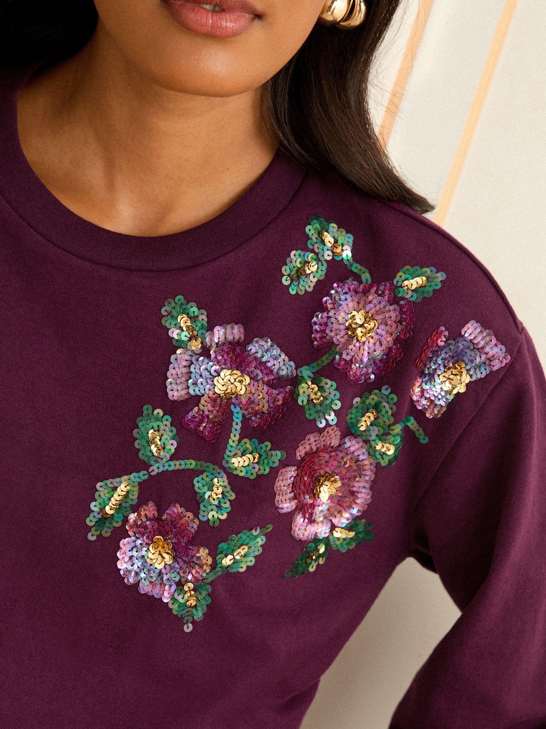 Love & Roses Burgundy Petite Crew Neck Jersey Sequin Sweatshirt