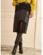 Love & Roses Black Faux Suede and Faux Leather Mix Midi Skirt