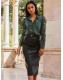 Sosandar Black Leather Panelled Pencil Midi Skirt