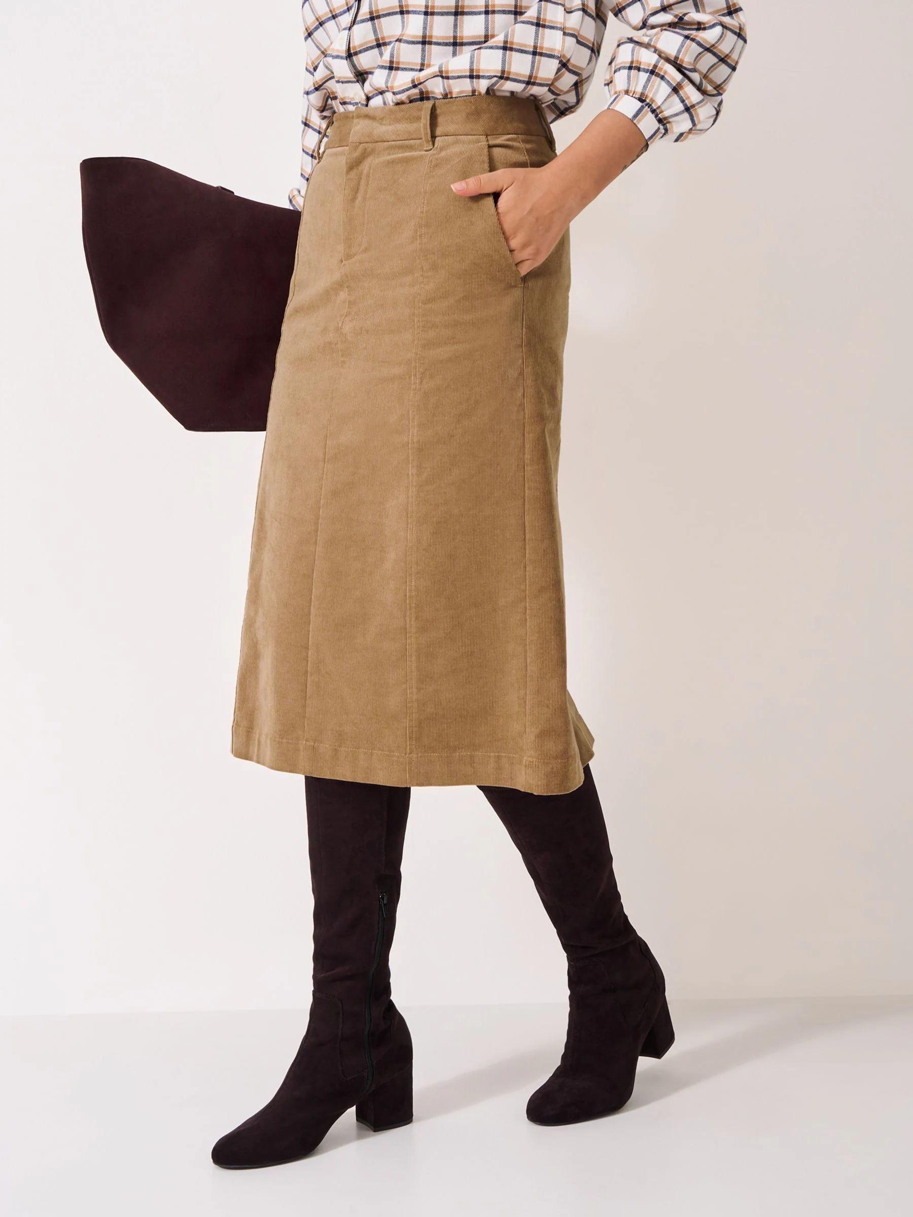 Crew Clothing Natural Tara Cord Midi Skirt