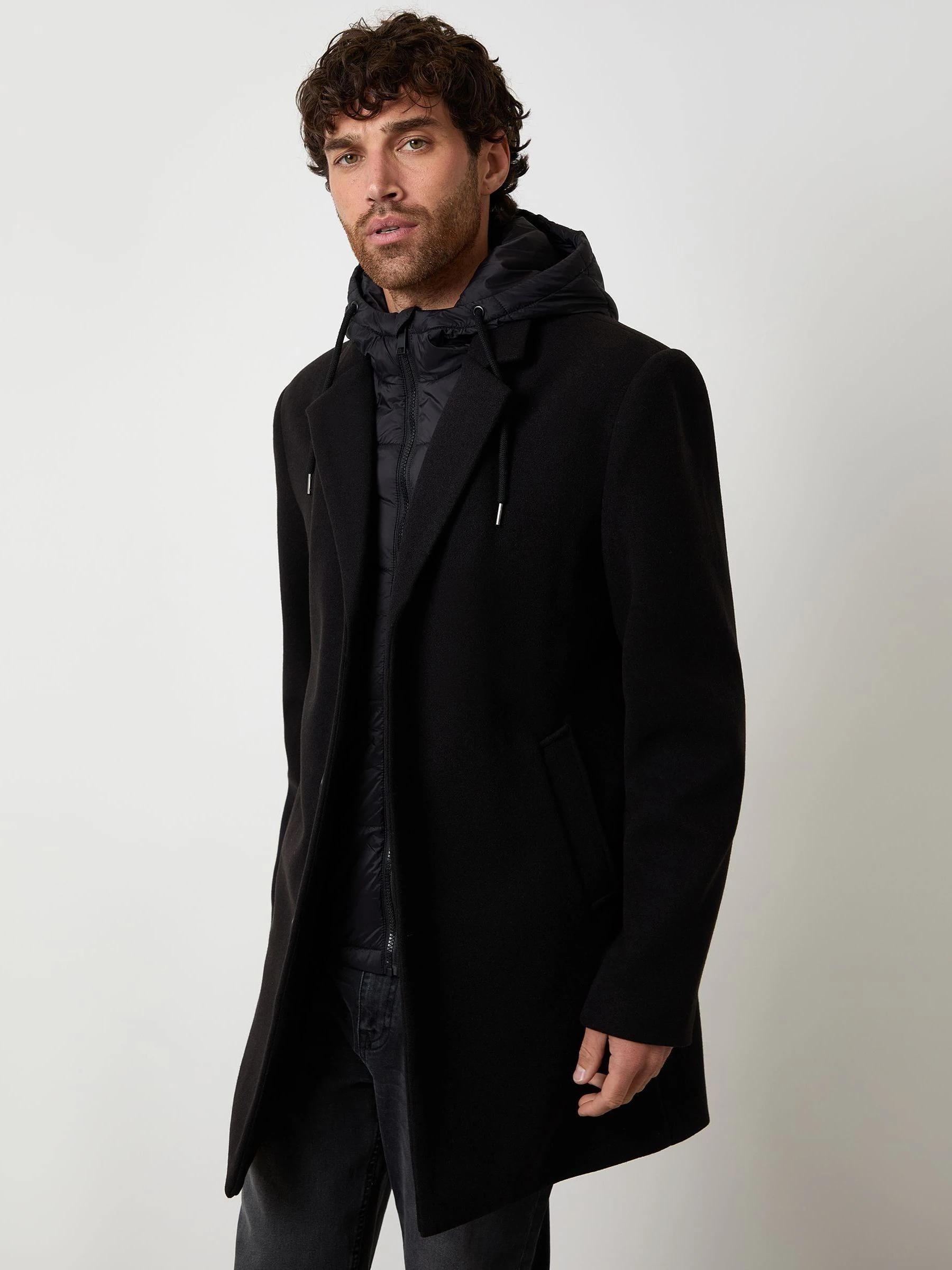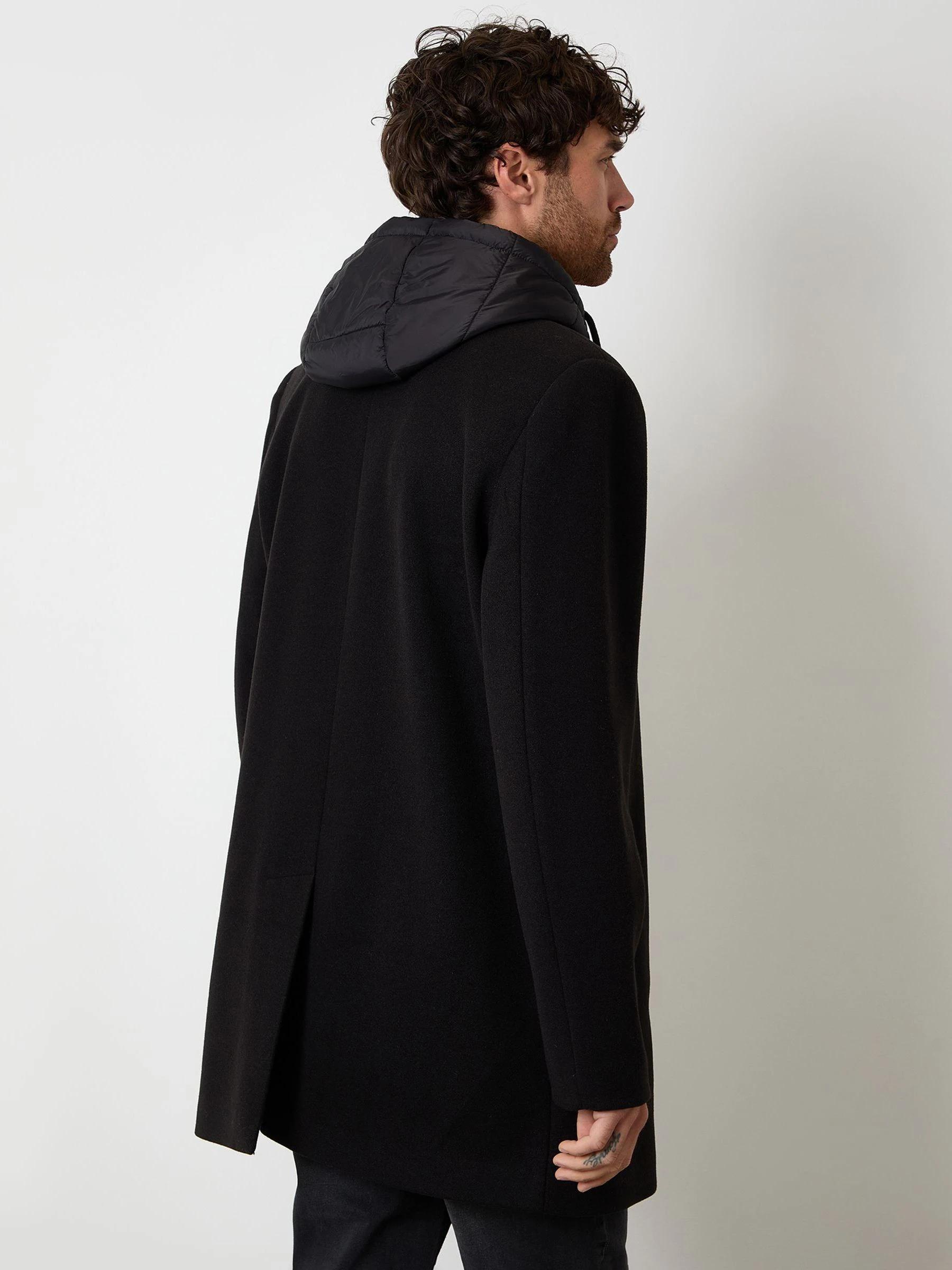 Threadbare Black Faux Wool Mock Inner Hooded Longline Coat