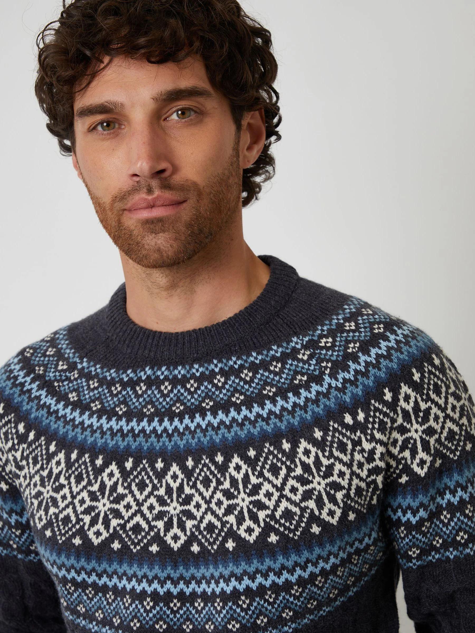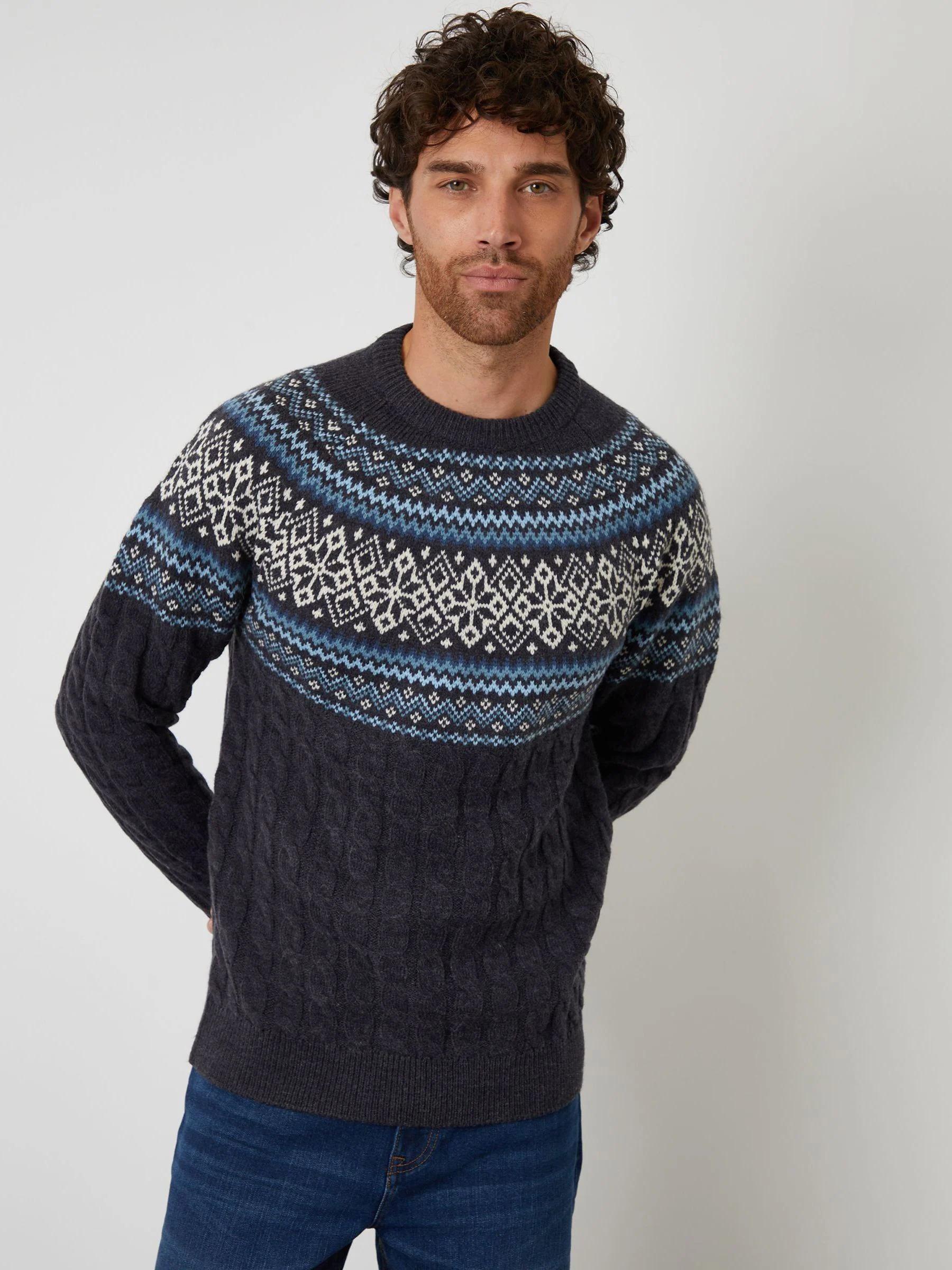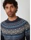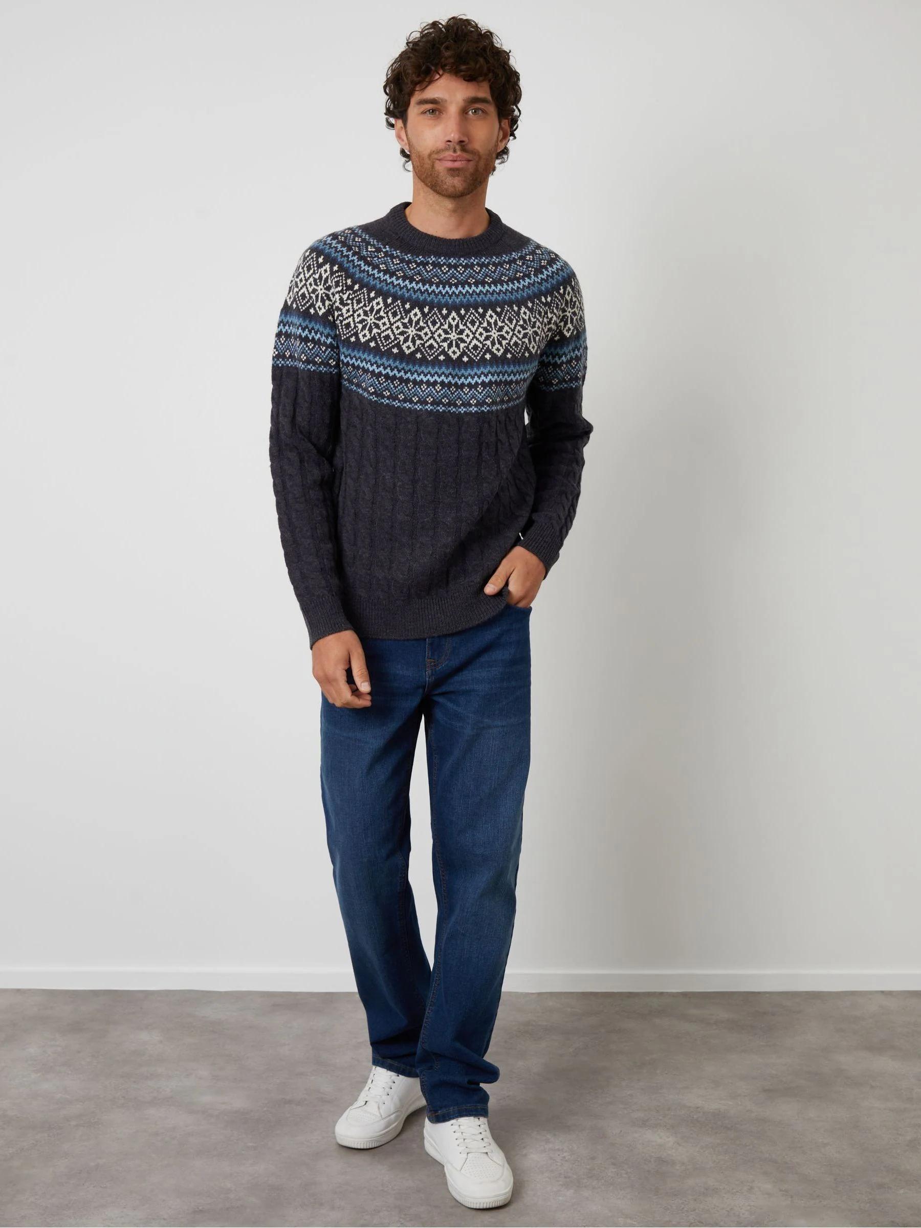 Threadbare Navy Cable Knit Fairisle Crew Neck Christmas Jumper