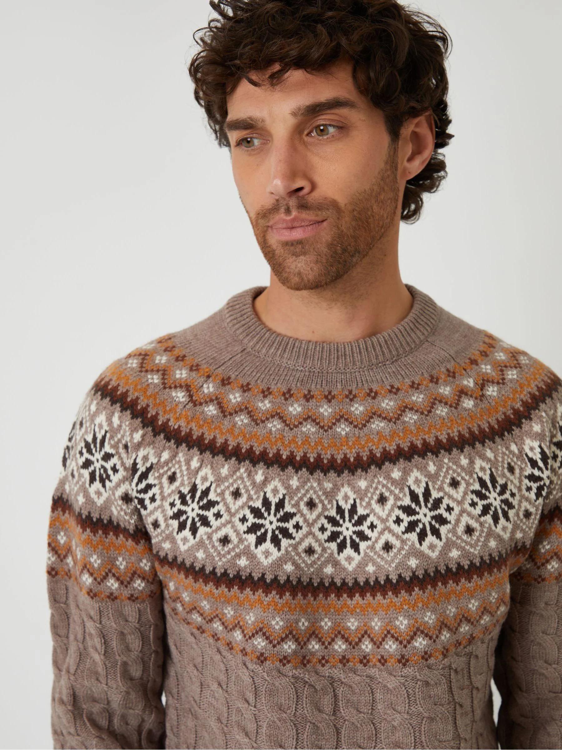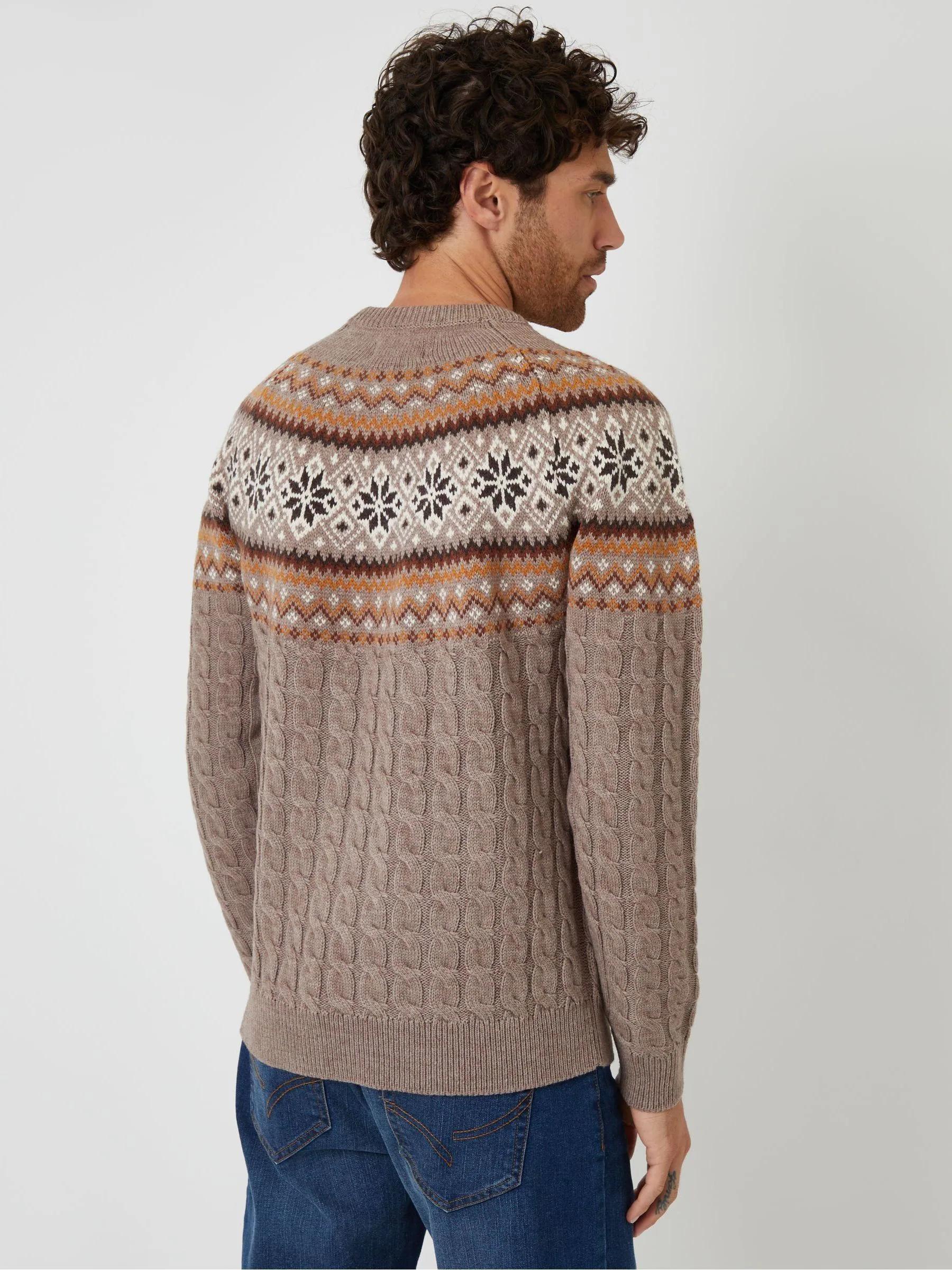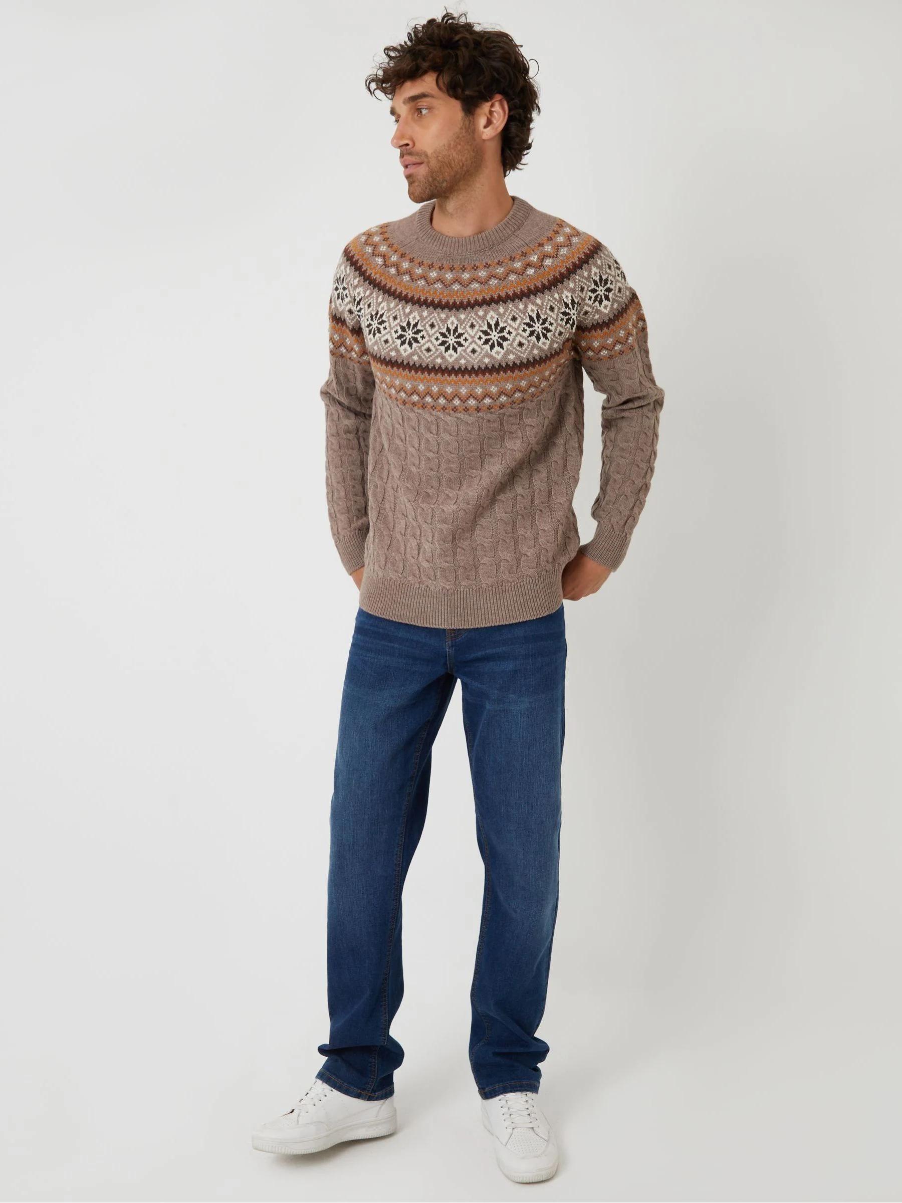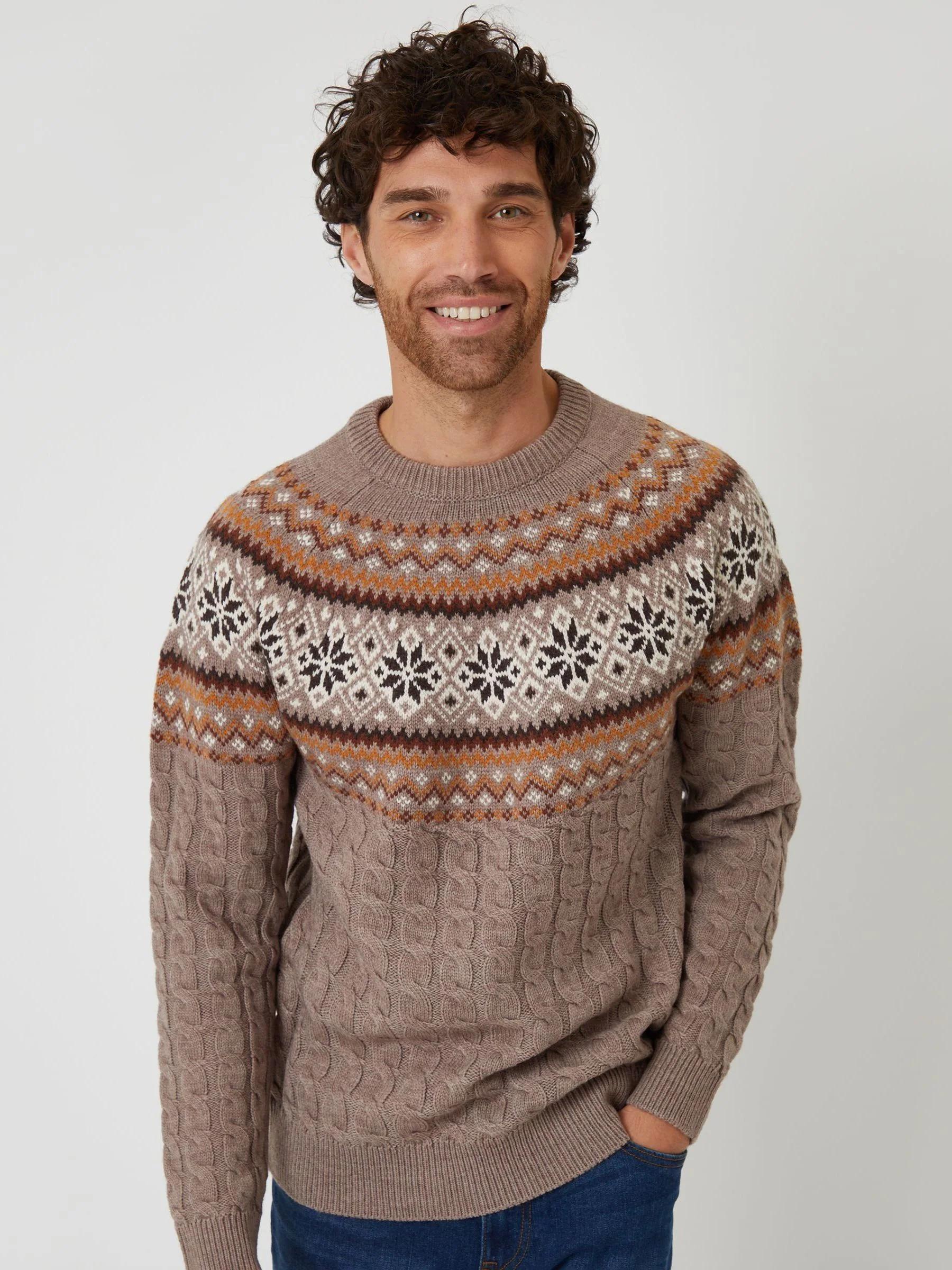 Threadbare Brown Cable Knit Fairisle Crew Neck Christmas Jumper