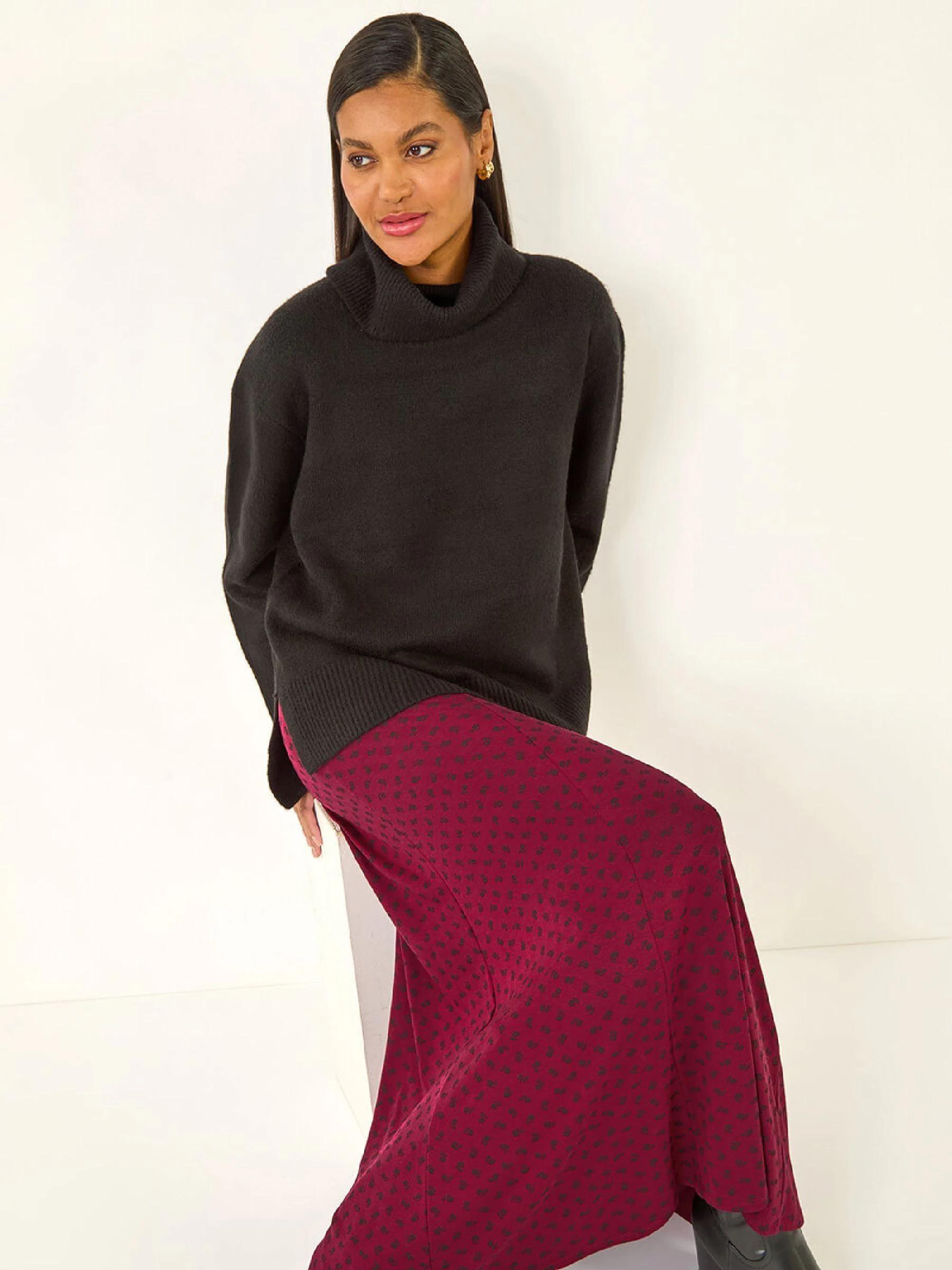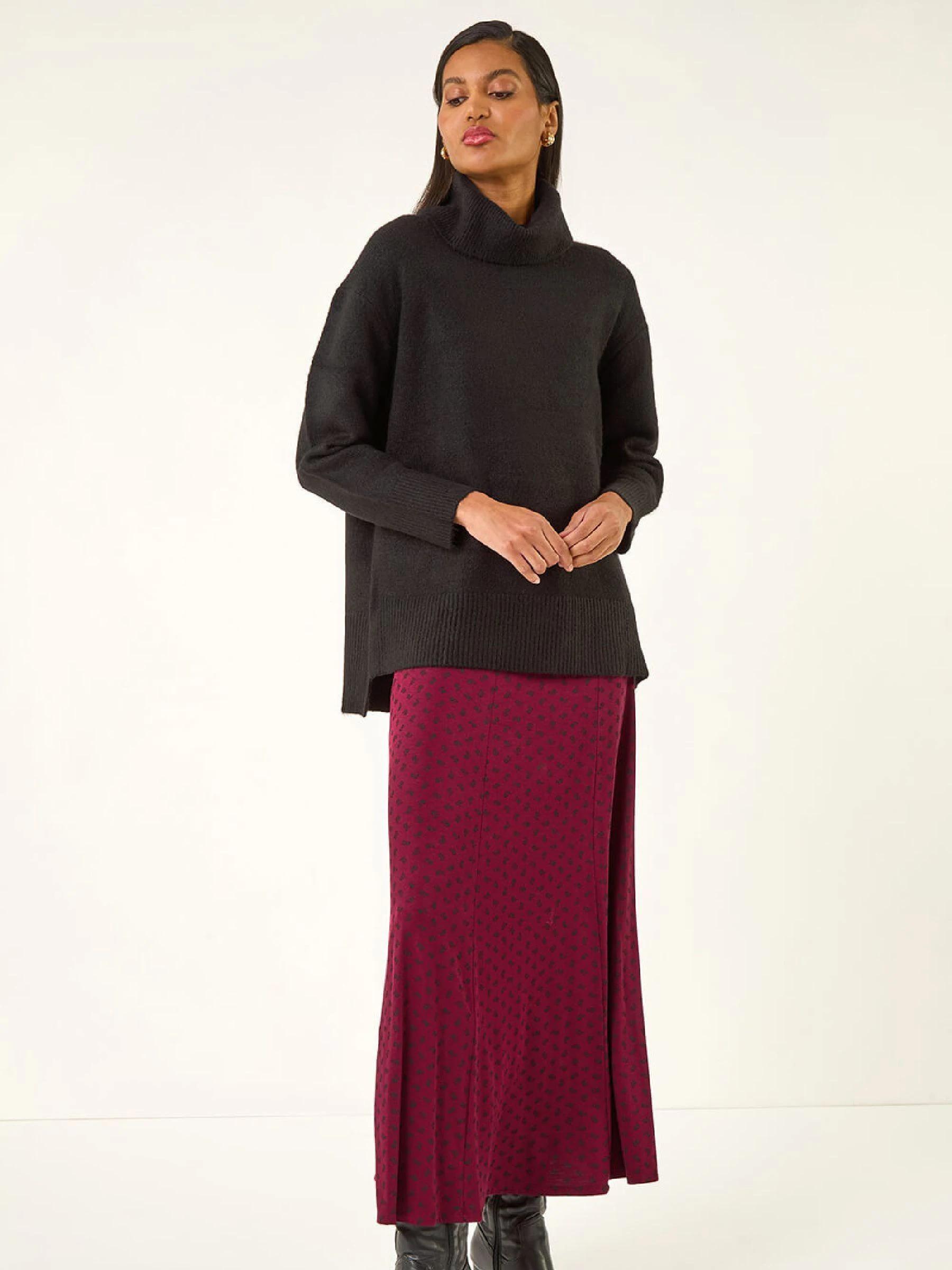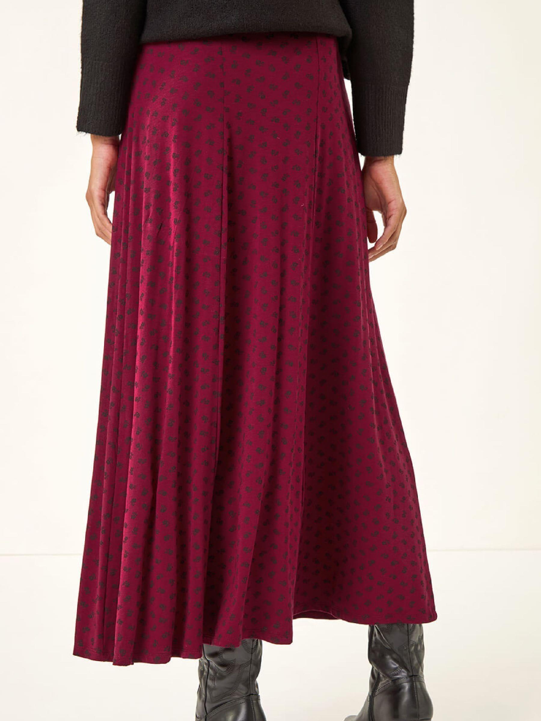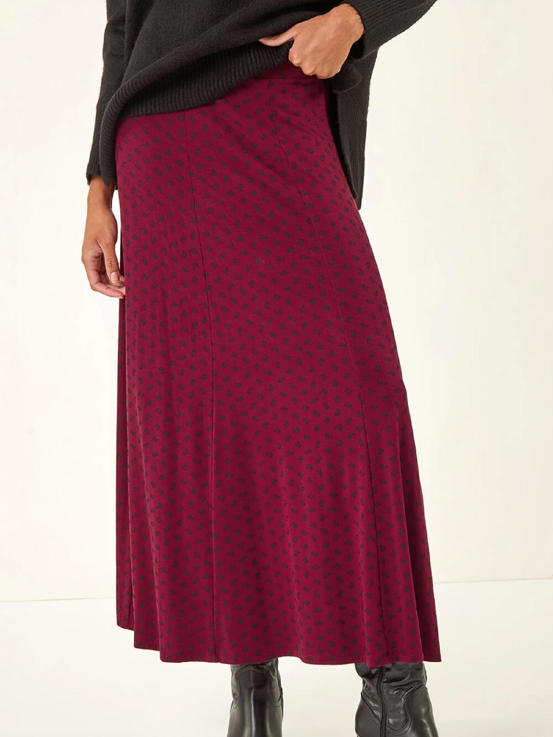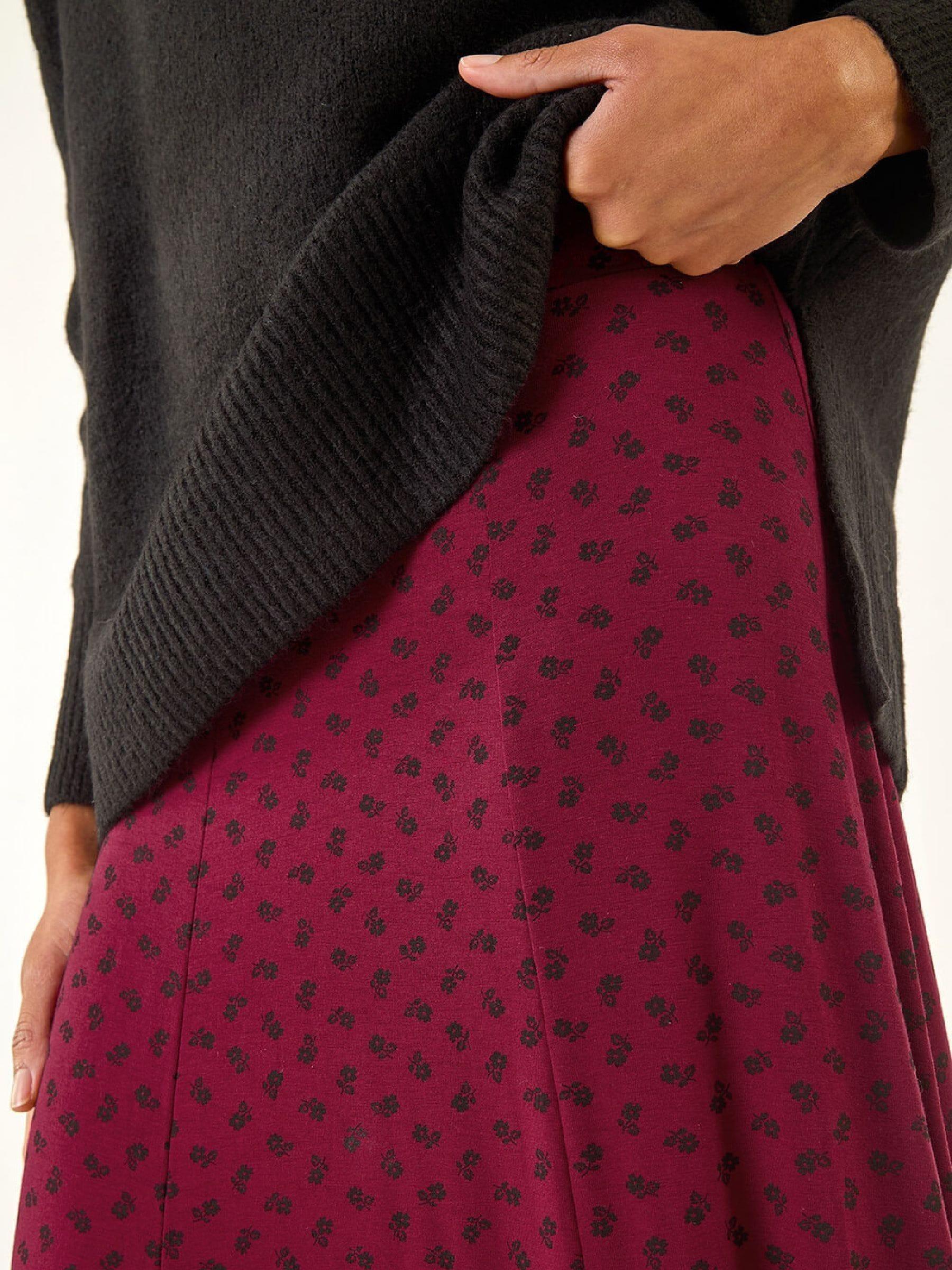 Roman Pink Ditsy Floral Print Stretch Midi Skirt