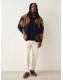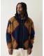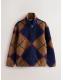 Navy Blue/Tan Brown Argyle Zip Through Full Zip Printed Fleece