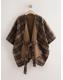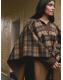 Brown Check Wrap Front Cape Poncho
