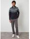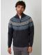 Threadbare Navy Fairisle Cable Knit Quarter Zip Jumper