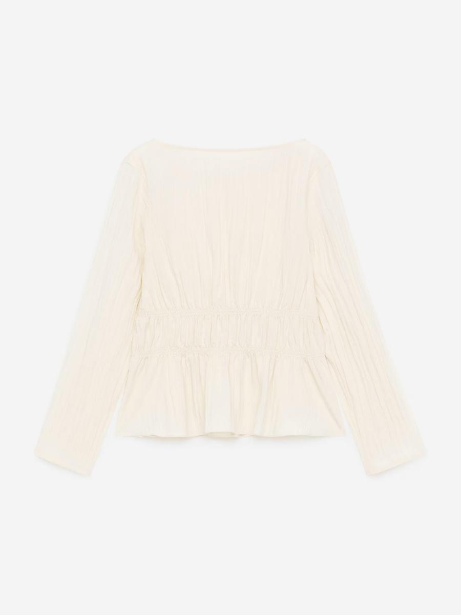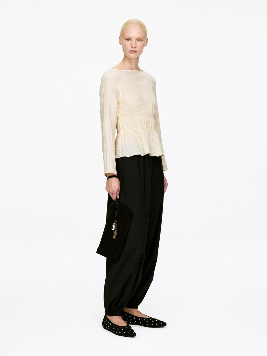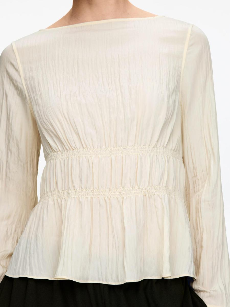 Long-sleeved top made from a viscose blend, with smock at waist and tie band at centre back. Slim fit.ARKET/Women's clothes/Women's tops/Women's long-sleeve tops