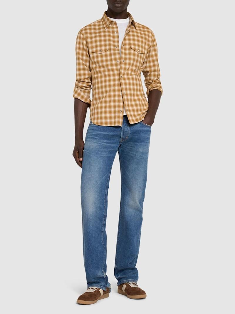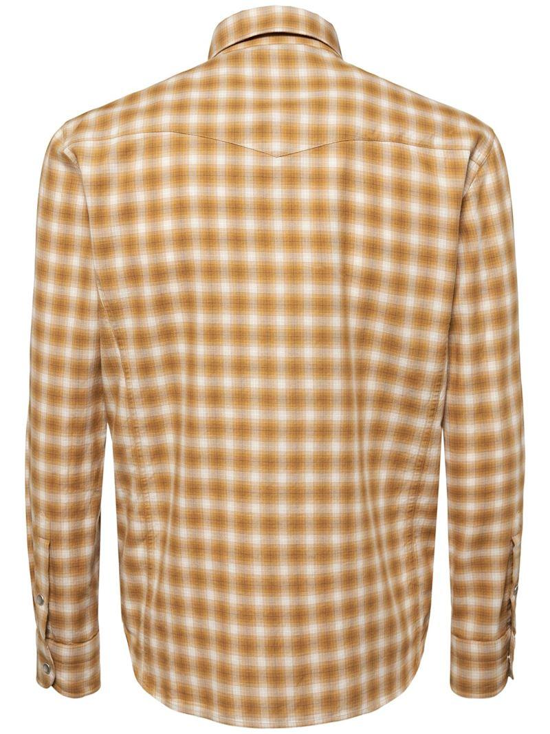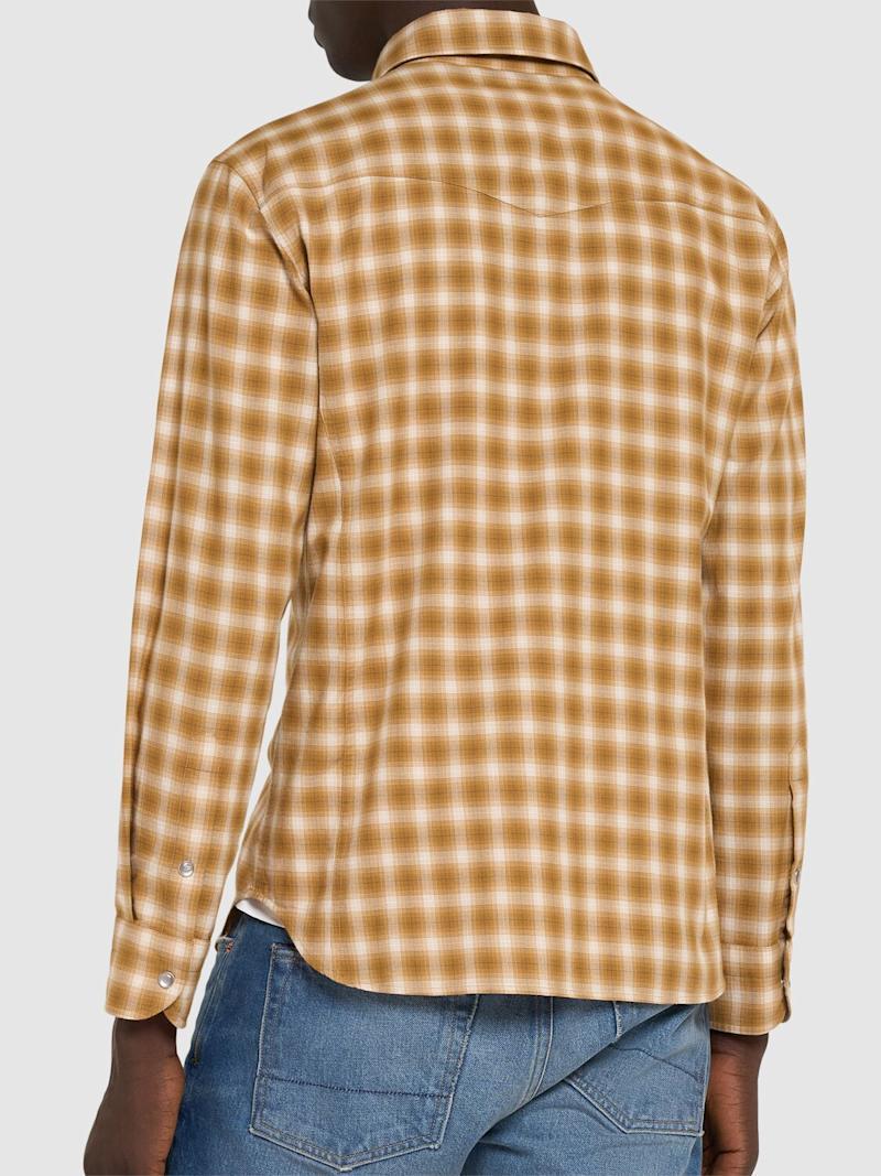 格纹棉质修身西部风格衬衫 - 米黄色/棕色 - 男士 - Tom Ford - 正面按扣开合.