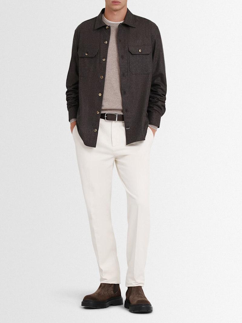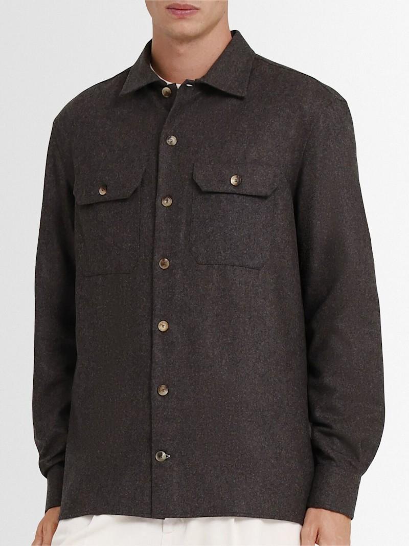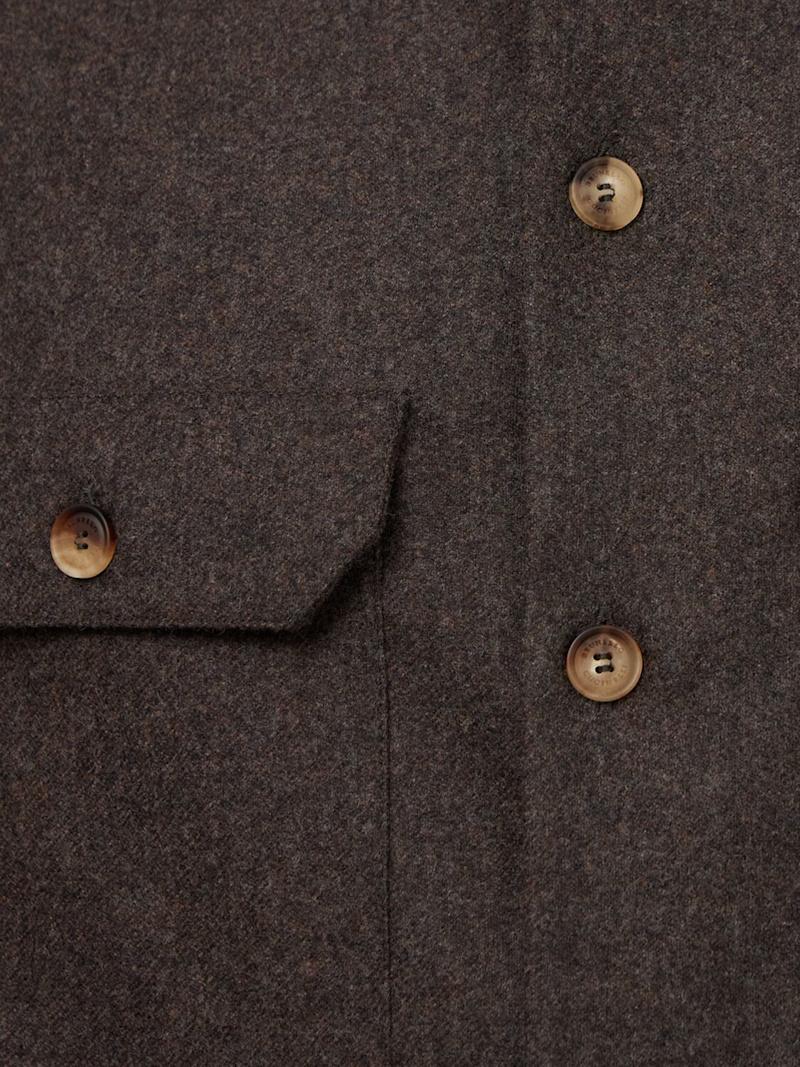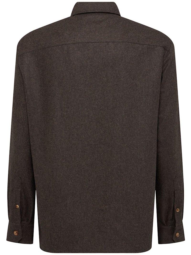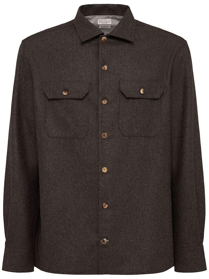 羊毛法兰绒衬衫 - 棕色 - 男士 - Brunello Cucinelli - 正面纽扣开合.
