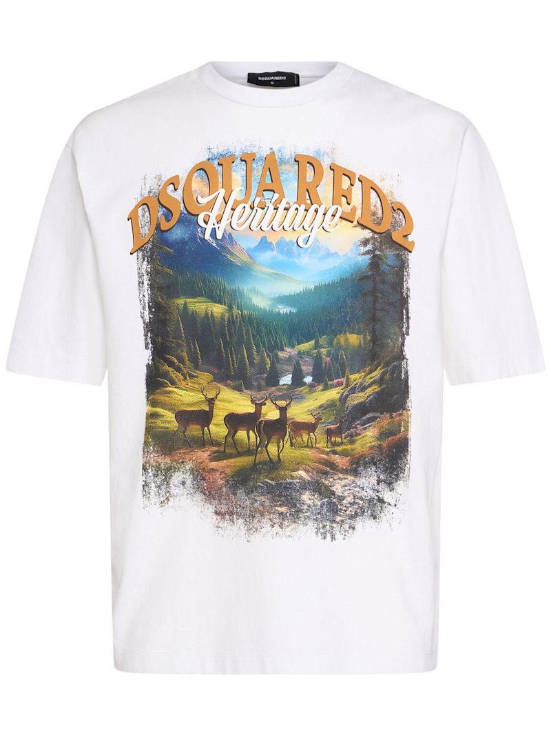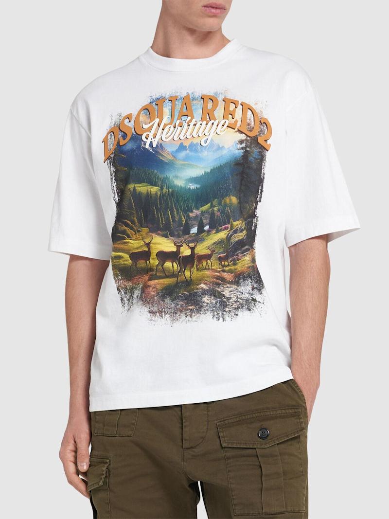 Heritage印花loose fit棉质T恤 - 白色 - 男士 - Dsquared2 - 圆领设计.