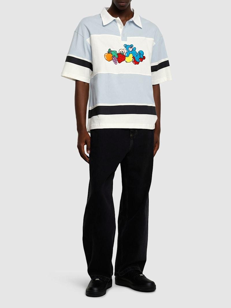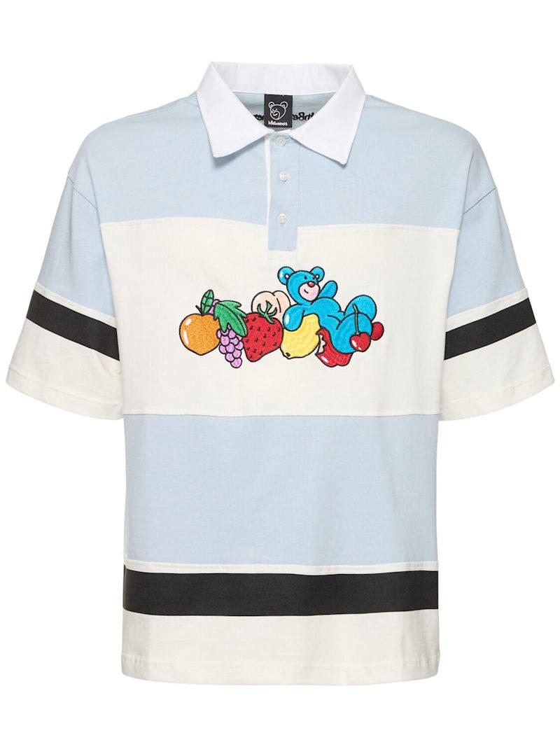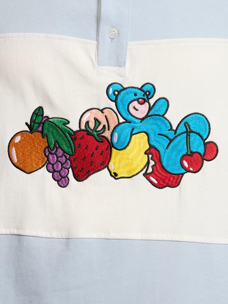 男女同款fruit & bear平纹针织POLO衫 - Cielo/Sky - 男士 - InBetweeners - 正面半开襟纽扣.