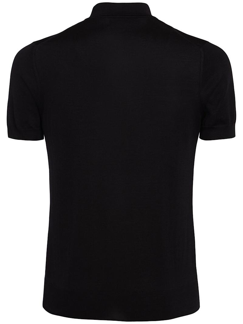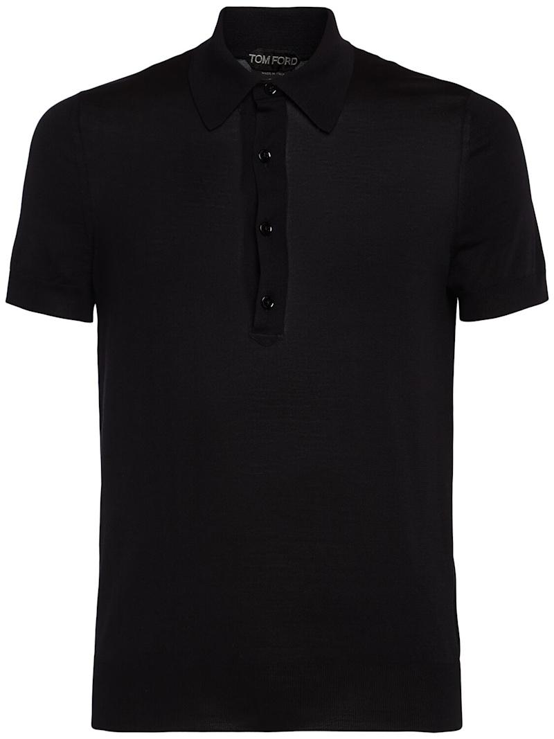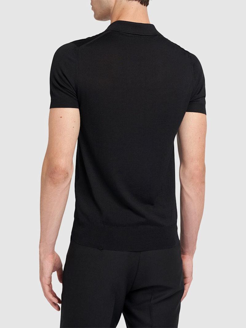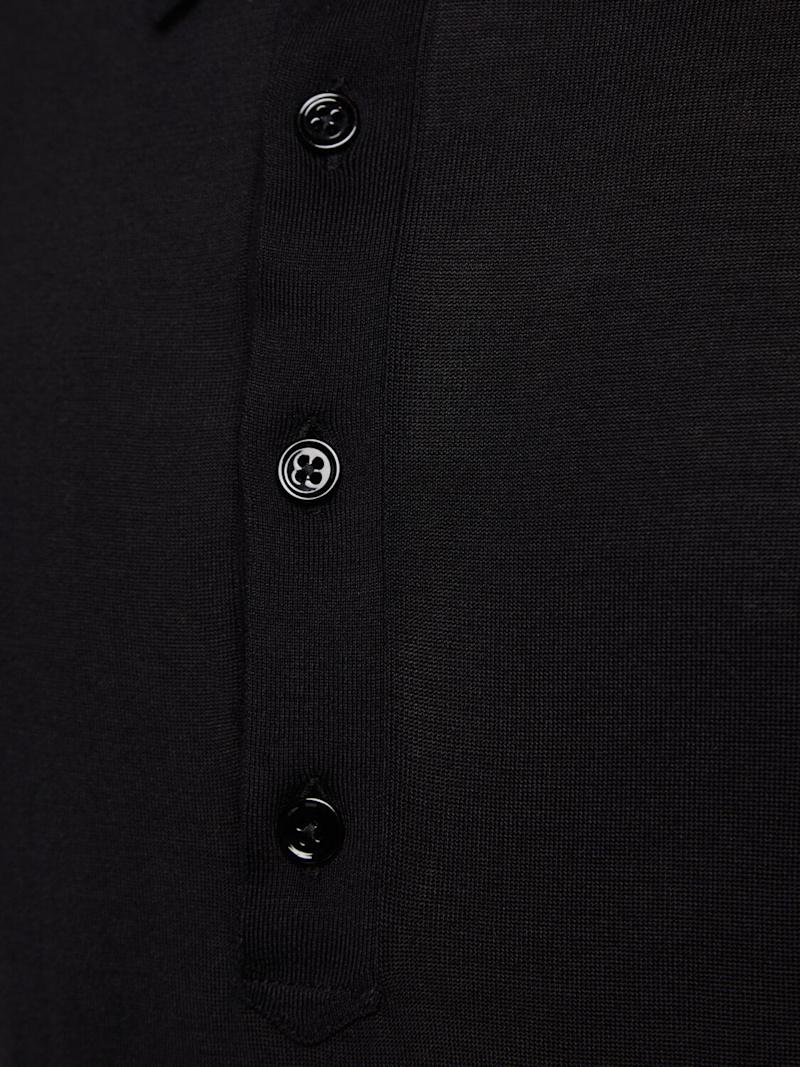 真丝混纺短袖POLO衫 - 黑色 - 男士 - Tom Ford - 正面半开襟纽扣