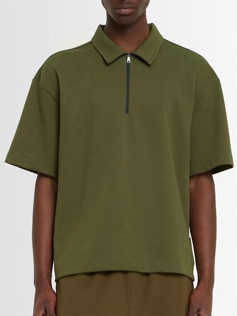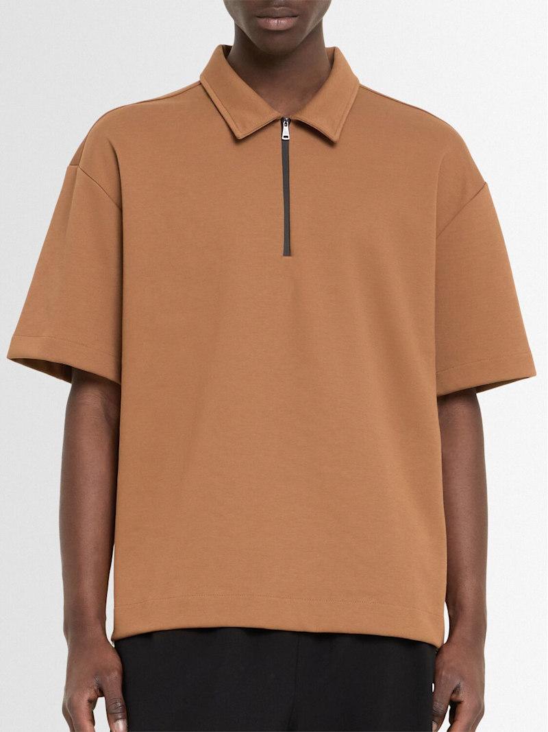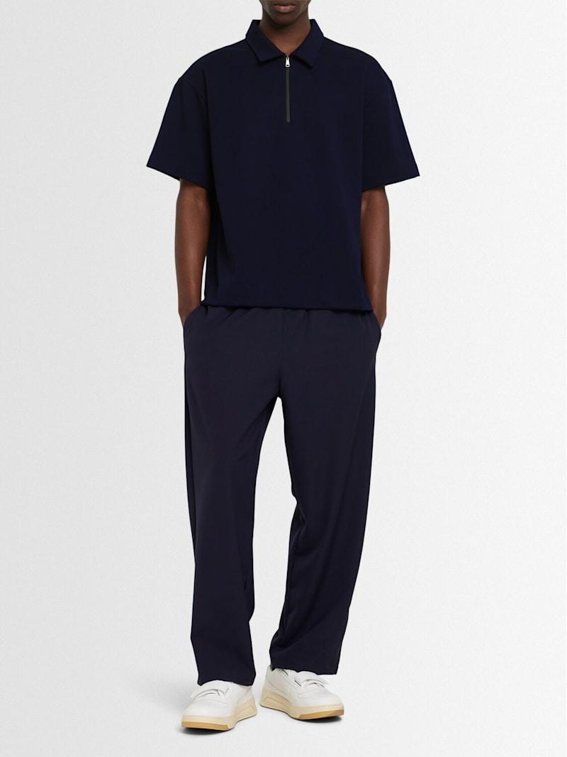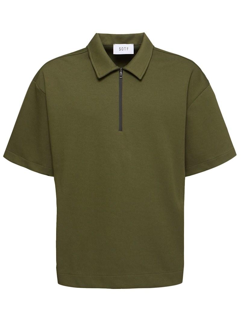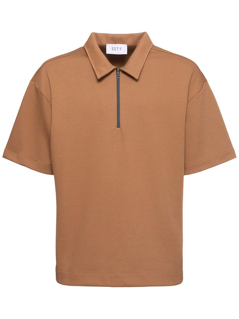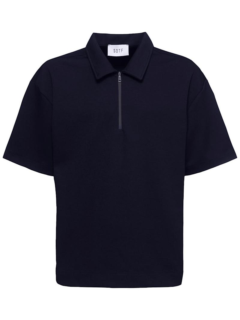 双面布POLO衫 - 蓝色 - 男士 - SOTF - 正面半长拉链开合