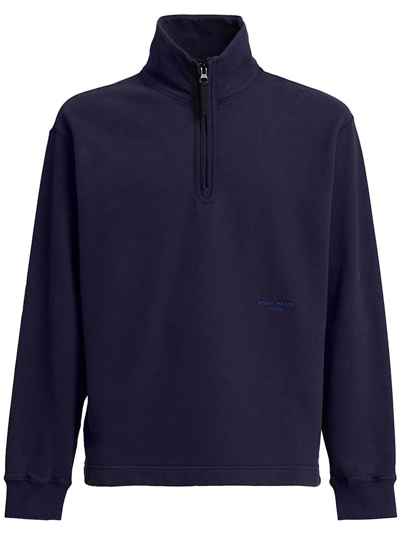 长袖拉绒棉质POLO衫 - 海军蓝 - 男士 - Stone Island - 正面半开襟纽扣.