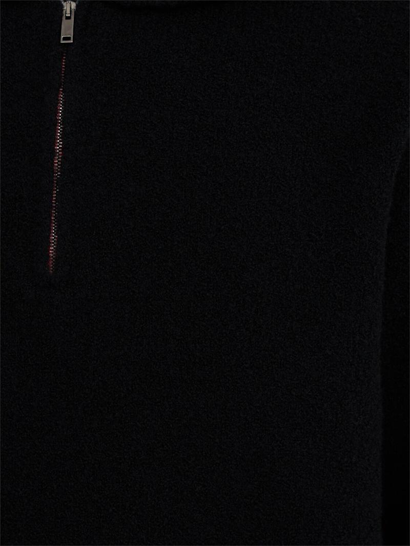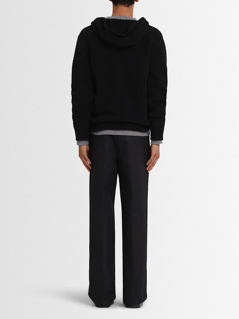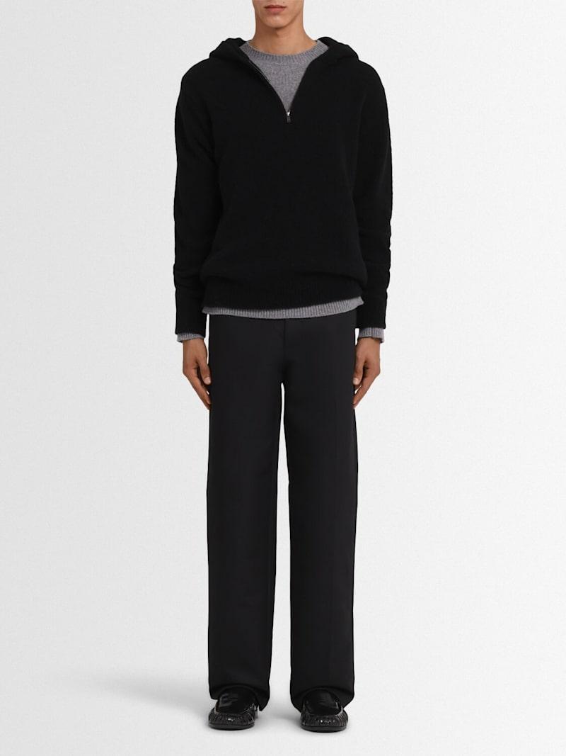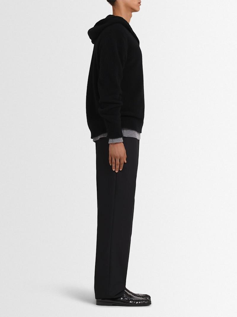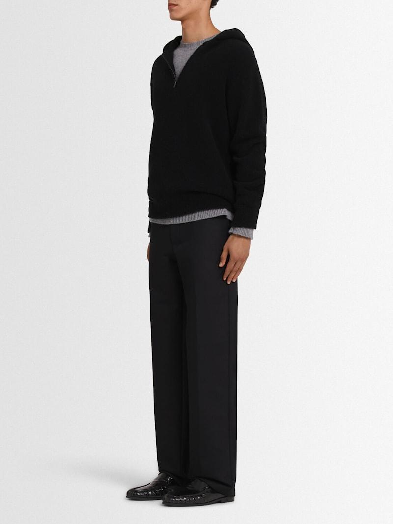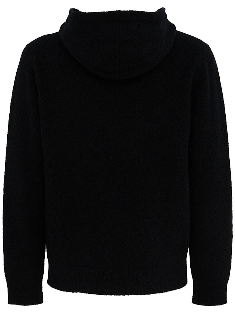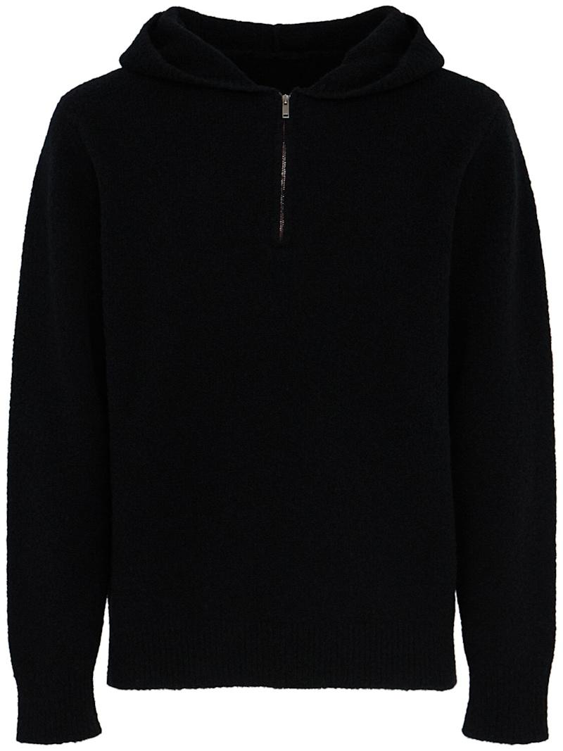 半长拉链开合羊毛针织连帽卫衣 - 黑色 - 男士 - The Core - 精细度:5 Gauge.
