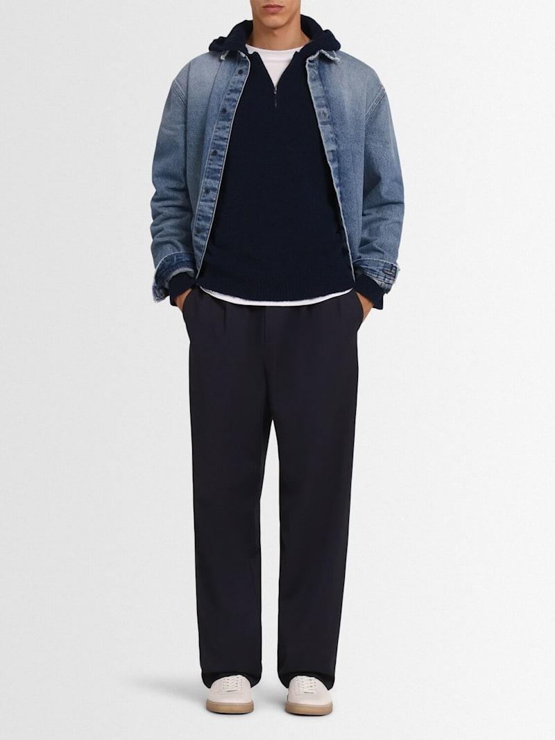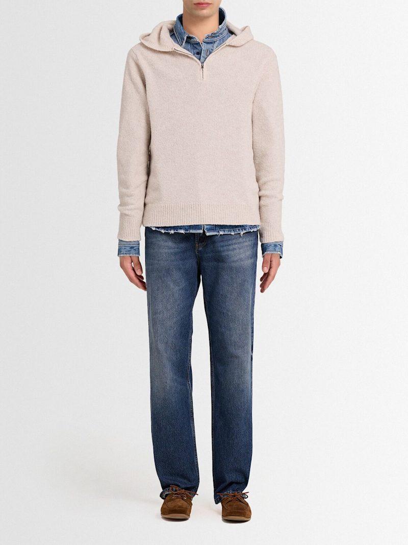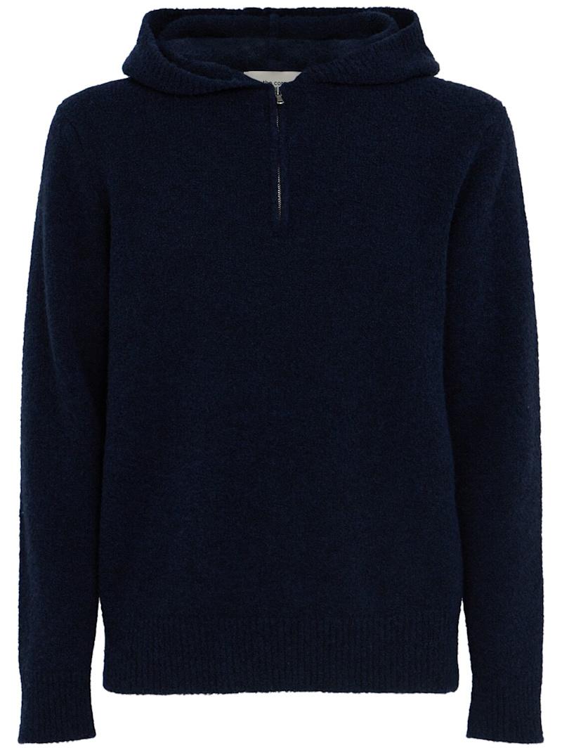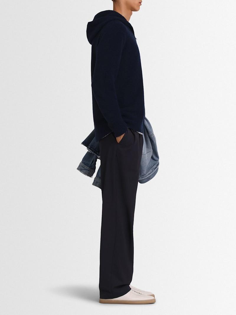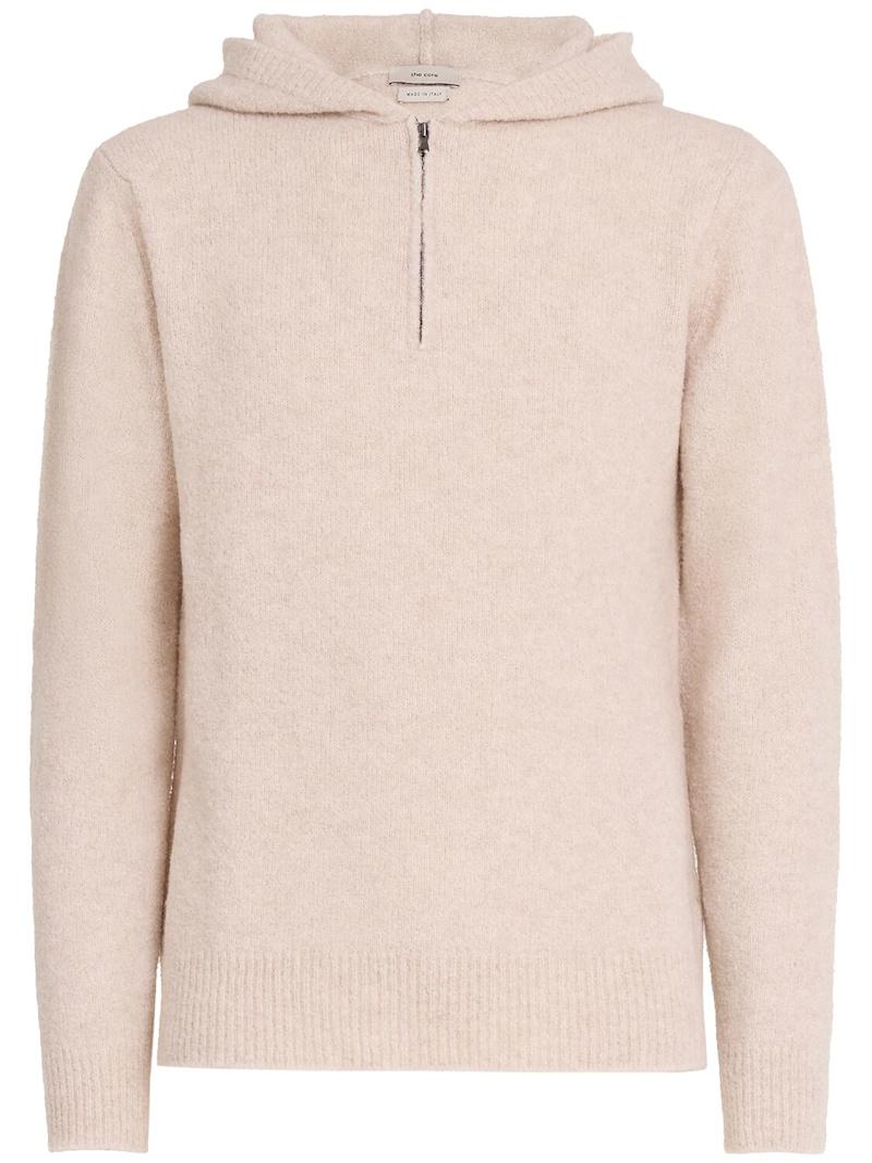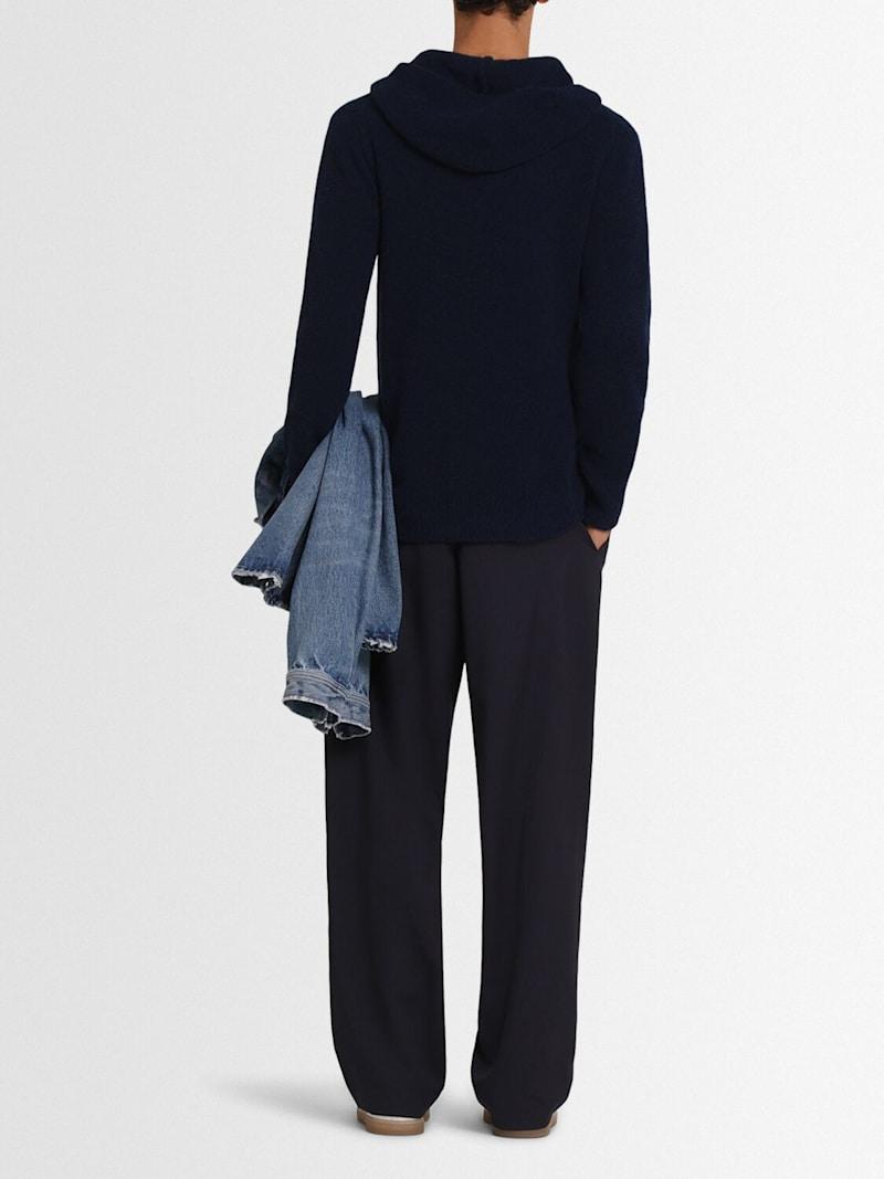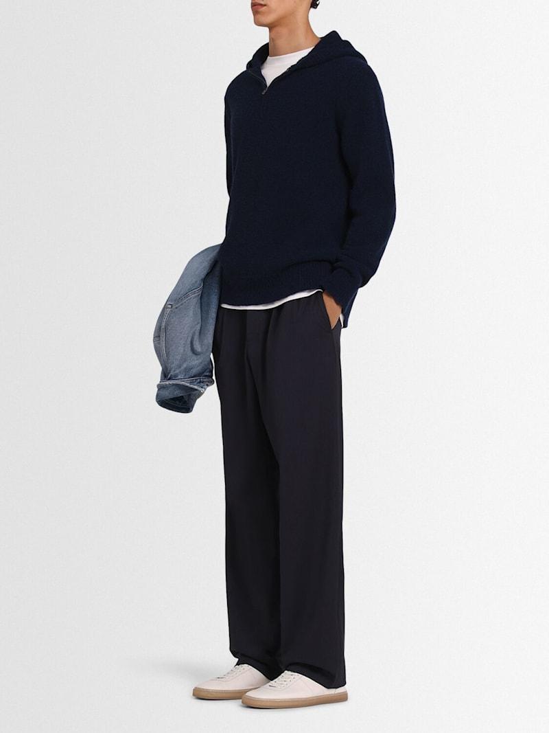 半长拉链开合羊毛针织连帽卫衣 - 黑色 - 男士 - The Core - 精细度:5 Gauge.
