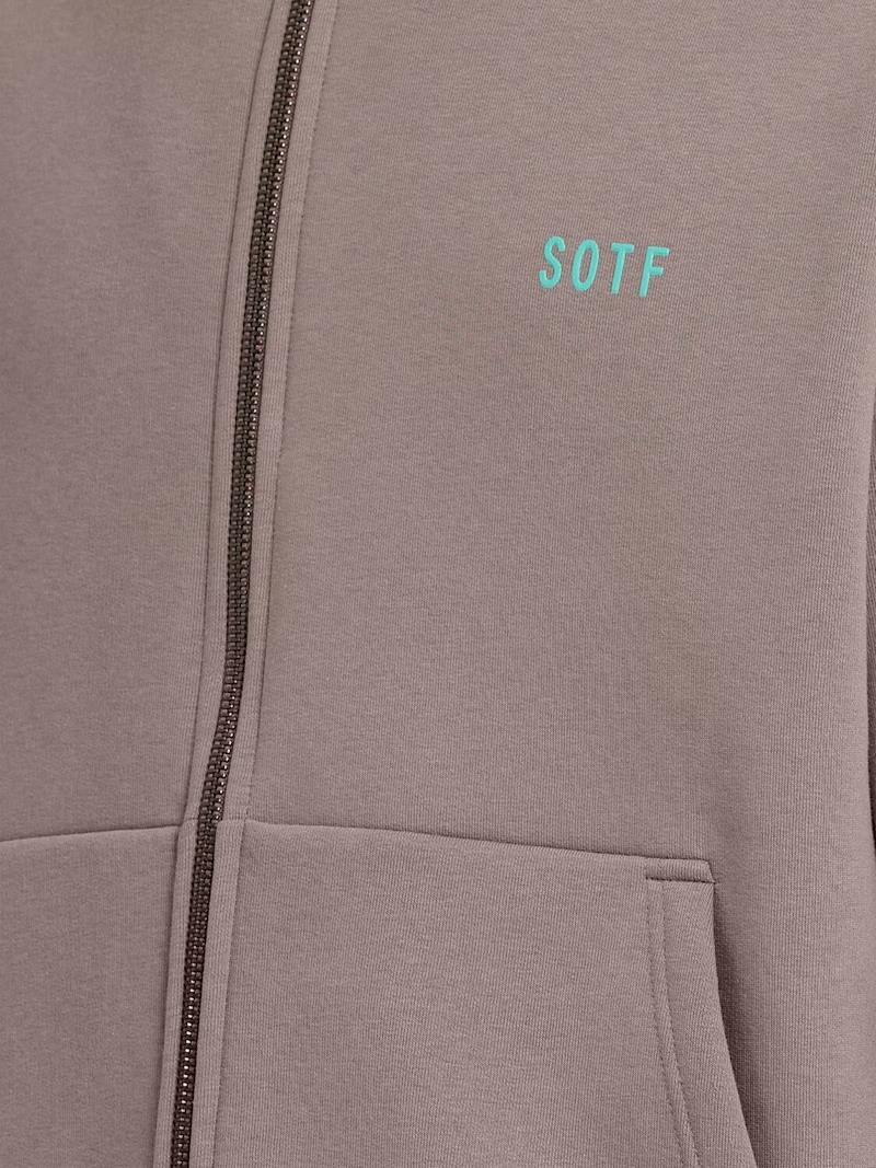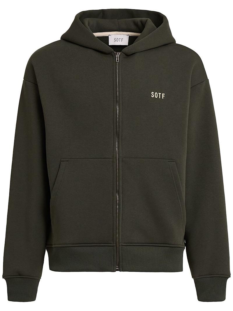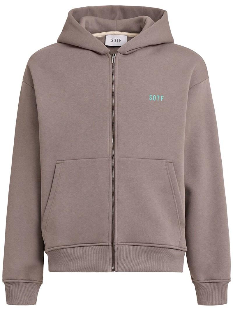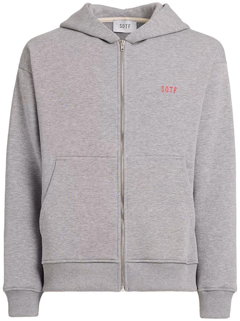 全长拉链连帽卫衣 - 麻灰色 - 男士 - SOTF - 不可拆卸风帽配有抽绳.