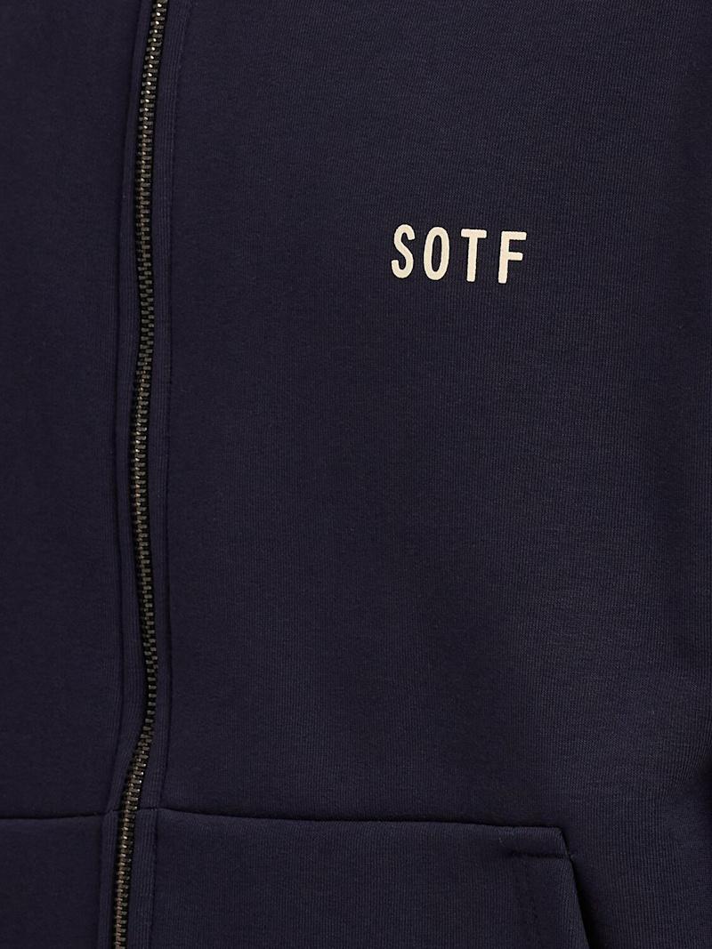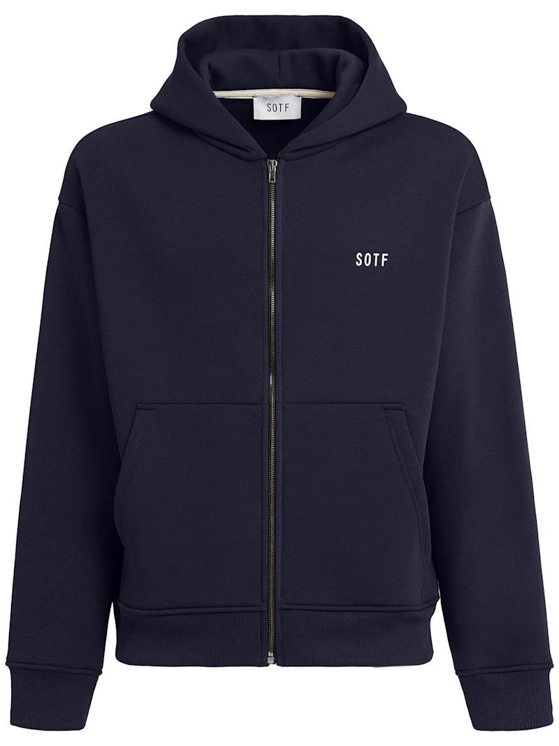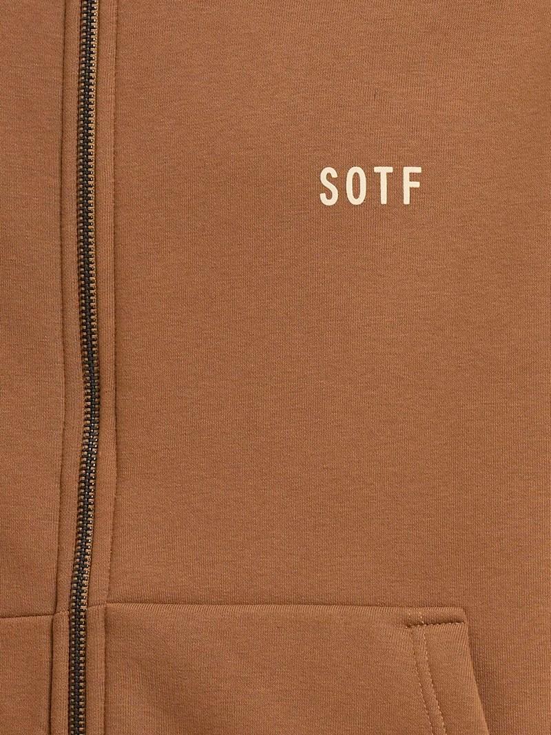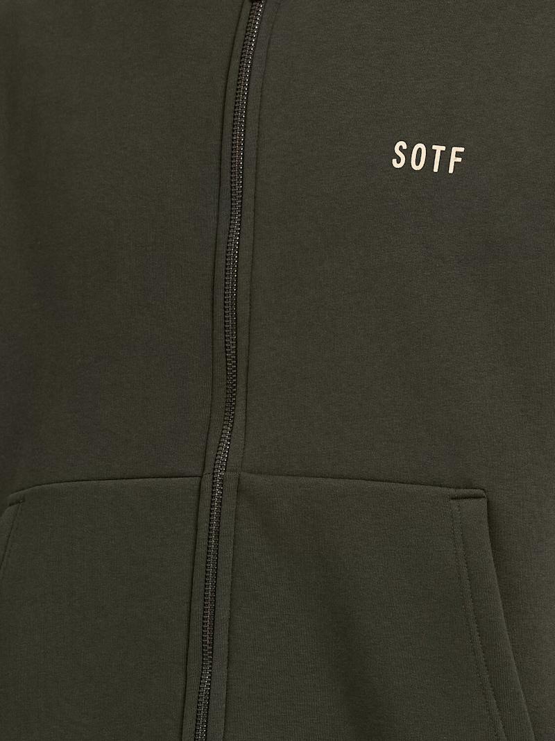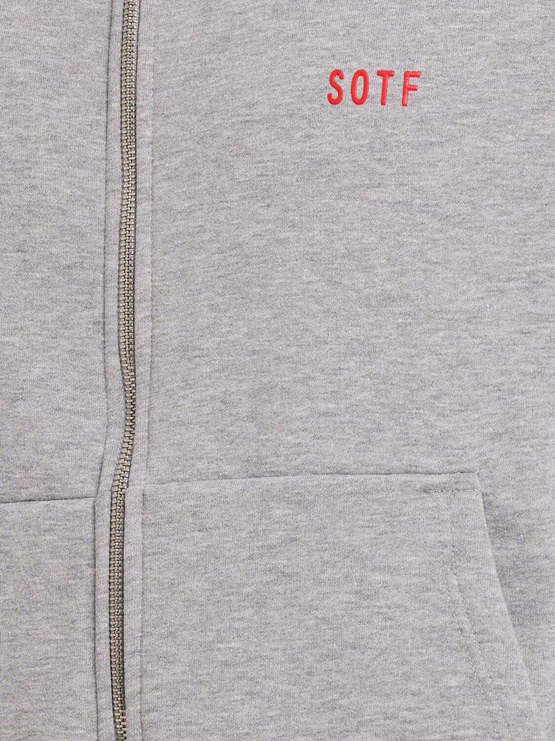 全长拉链连帽卫衣 - 麻灰色 - 男士 - SOTF - 不可拆卸风帽配有抽绳.