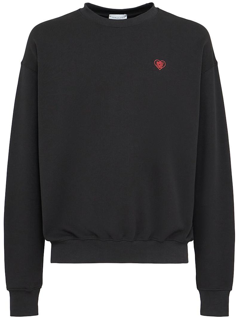 心形细节棉质圆领卫衣 - 黑色 - 男士 - Family First - 罗纹边缘.
