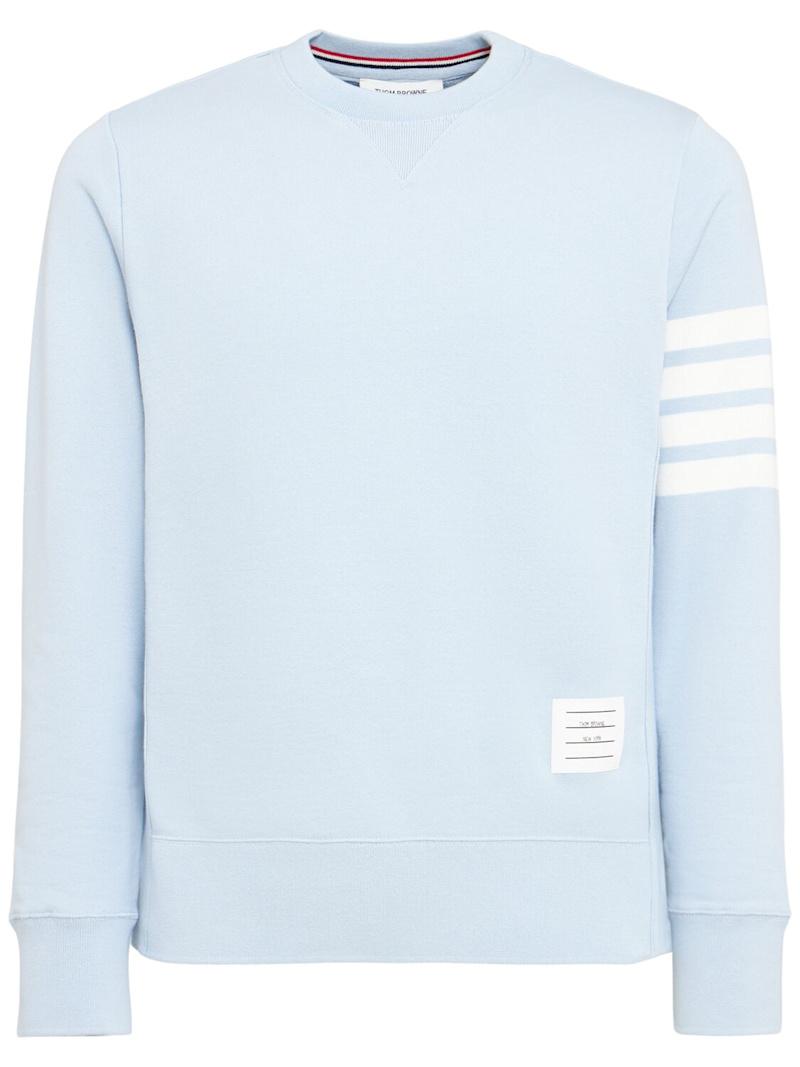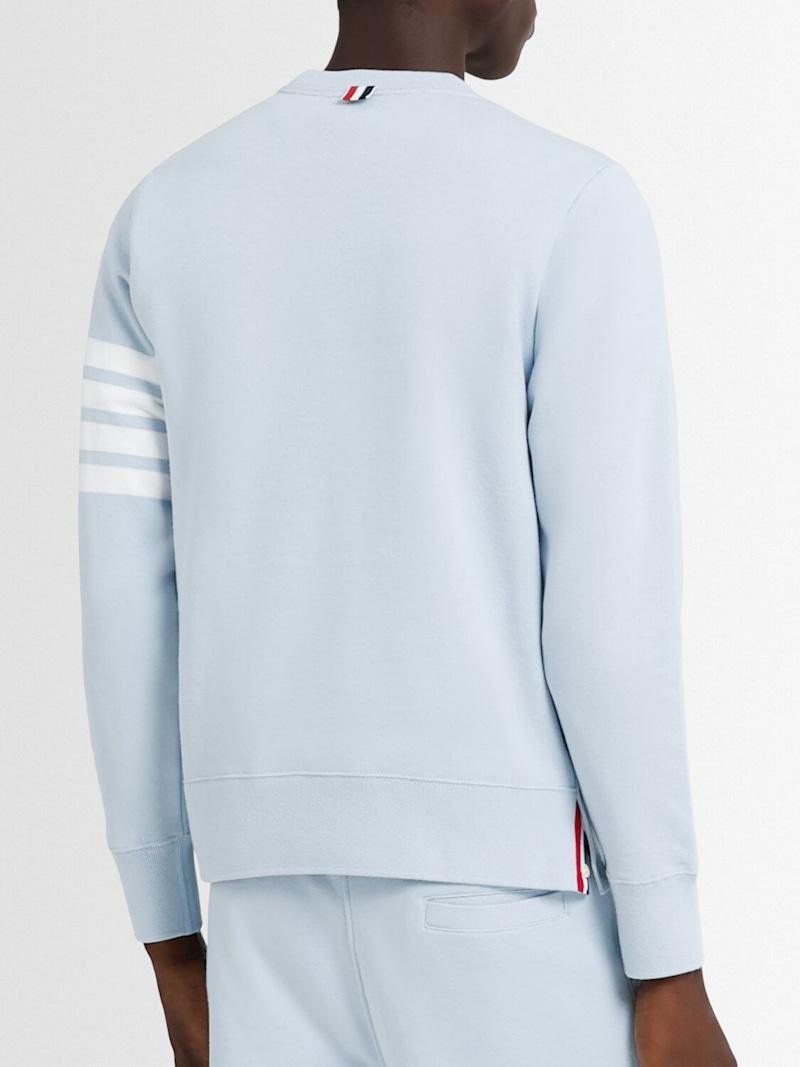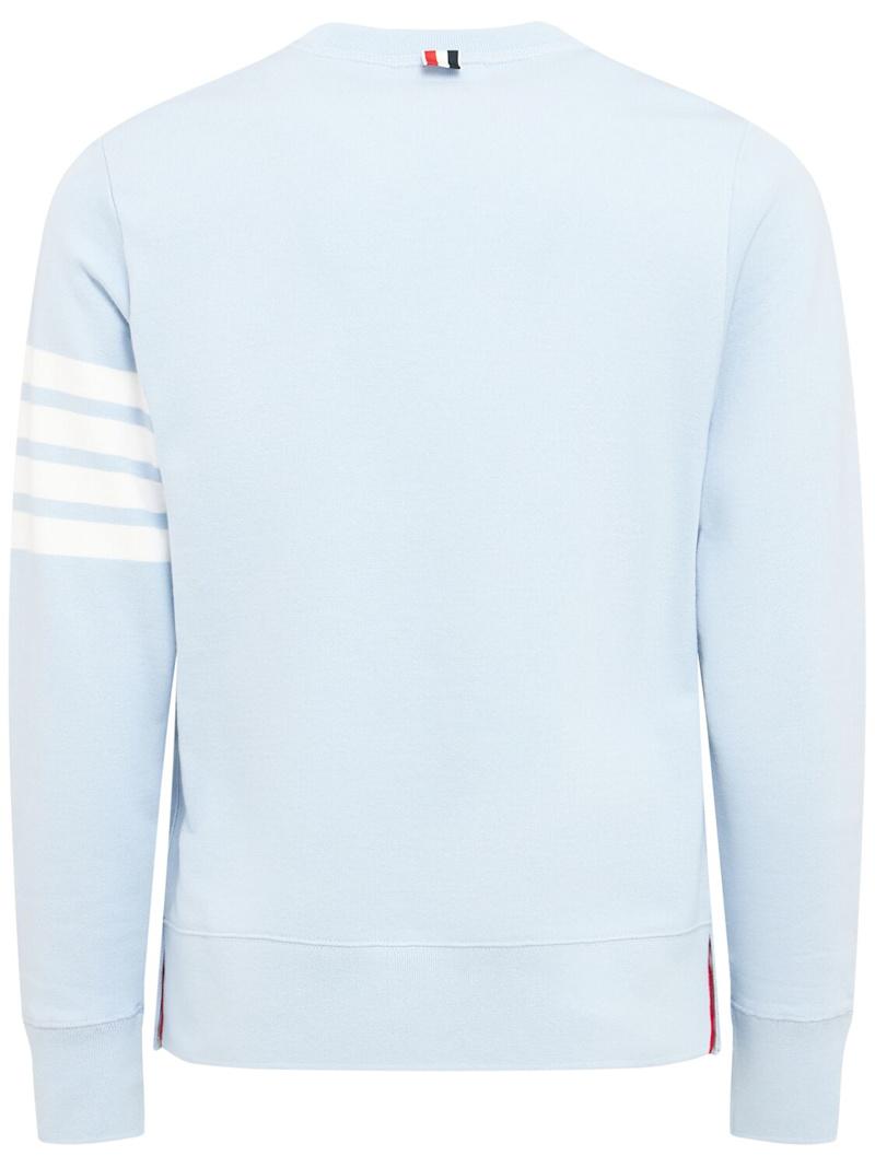 Logo棉质平纹针织卫衣 - 浅蓝色 - 男士 - Thom Browne - 罗纹领口、袖口和下摆.