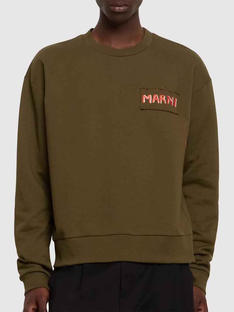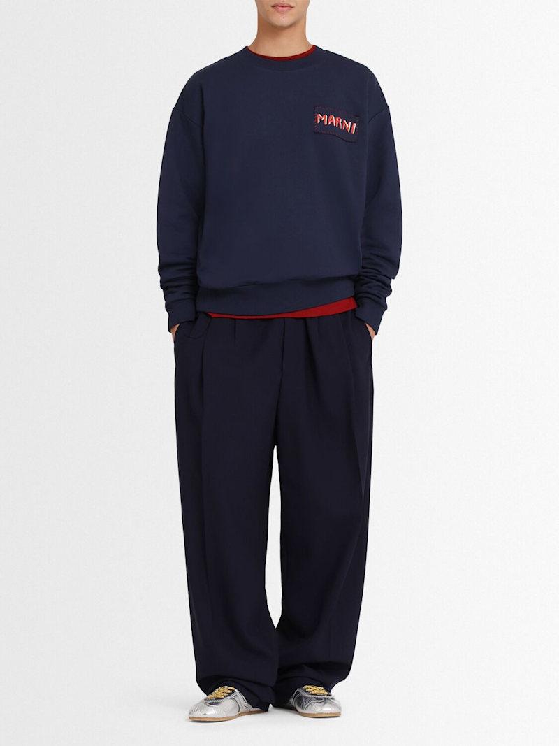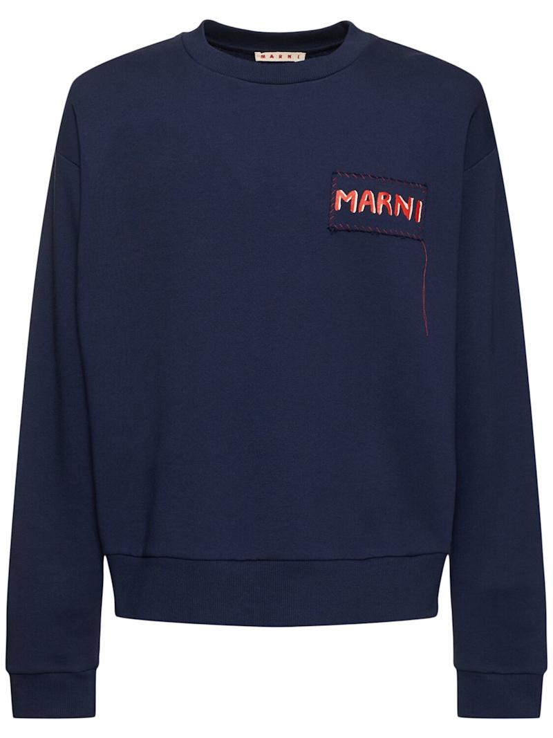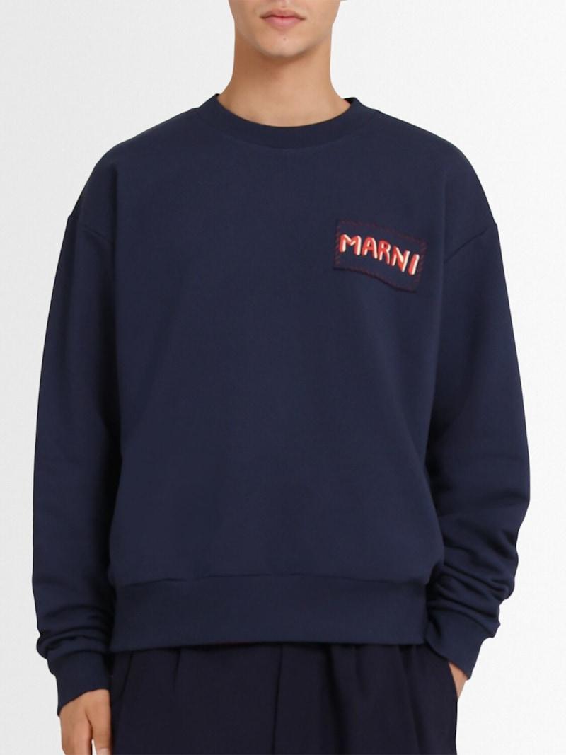 Logo圆领卫衣 - 蓝色 - 男士 - Marni - 罗纹领口、袖口和下摆.