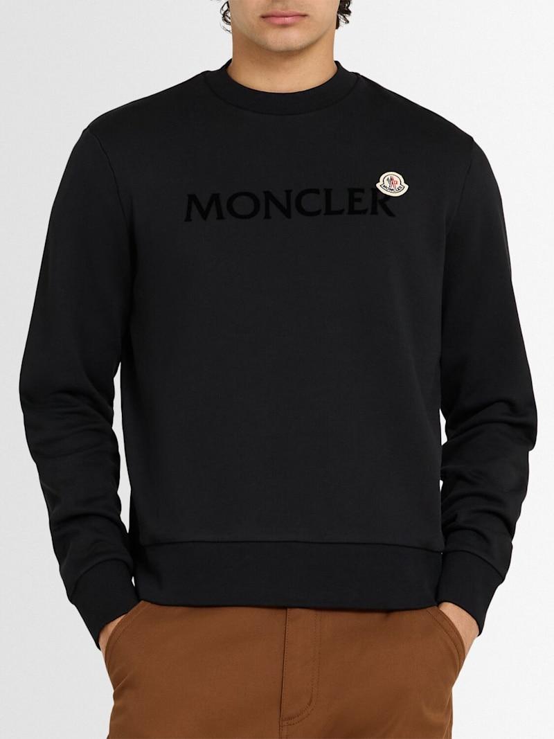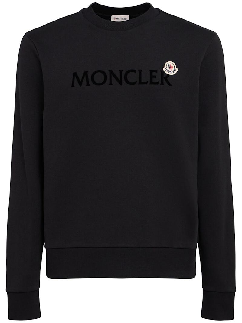Logo棉质拉绒圆领卫衣 - 黑色 - 男士 - Moncler - 采用棉质抓绒面料制作.