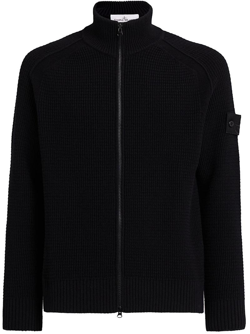 Geelong羊毛针织开衫 - 黑色 - 男士 - Stone Island - 正面拉链开合.