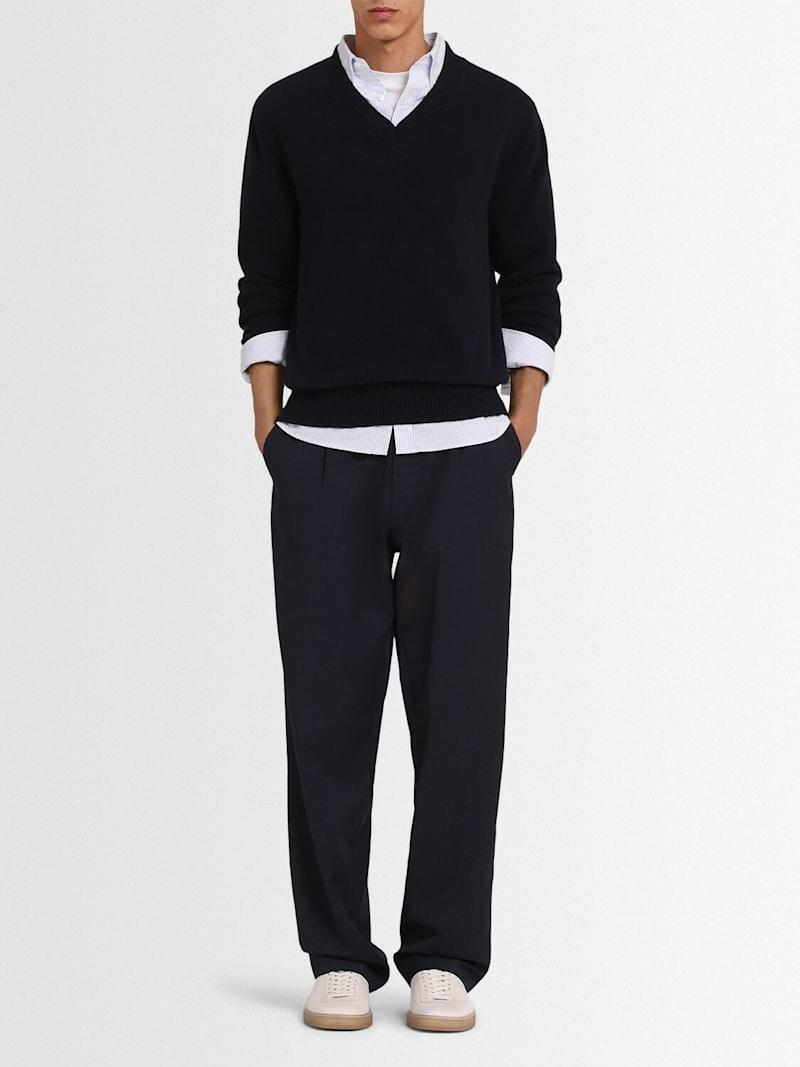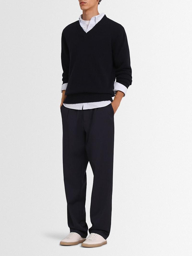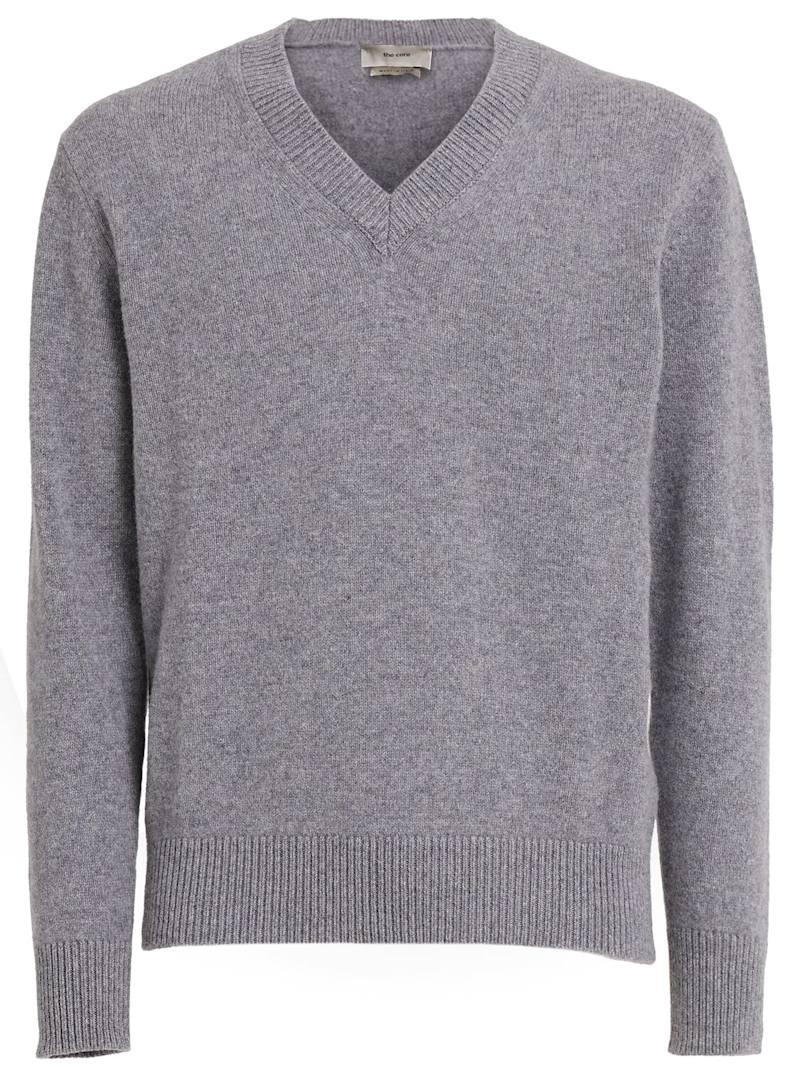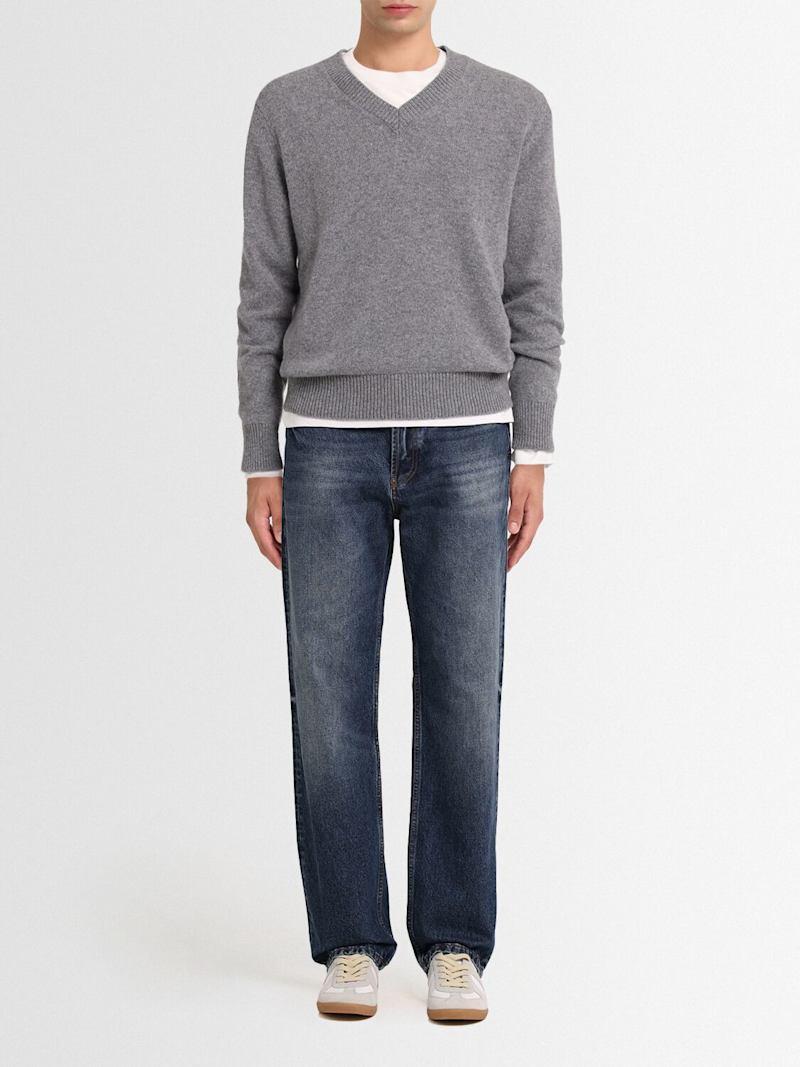 羊毛针织V领毛衣 - 灰色 - 男士 - The Core - 精细度:5 Gauge.