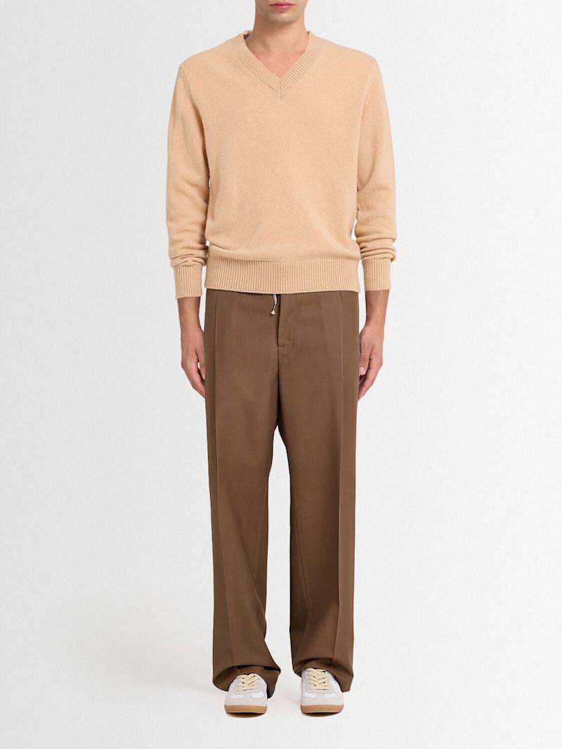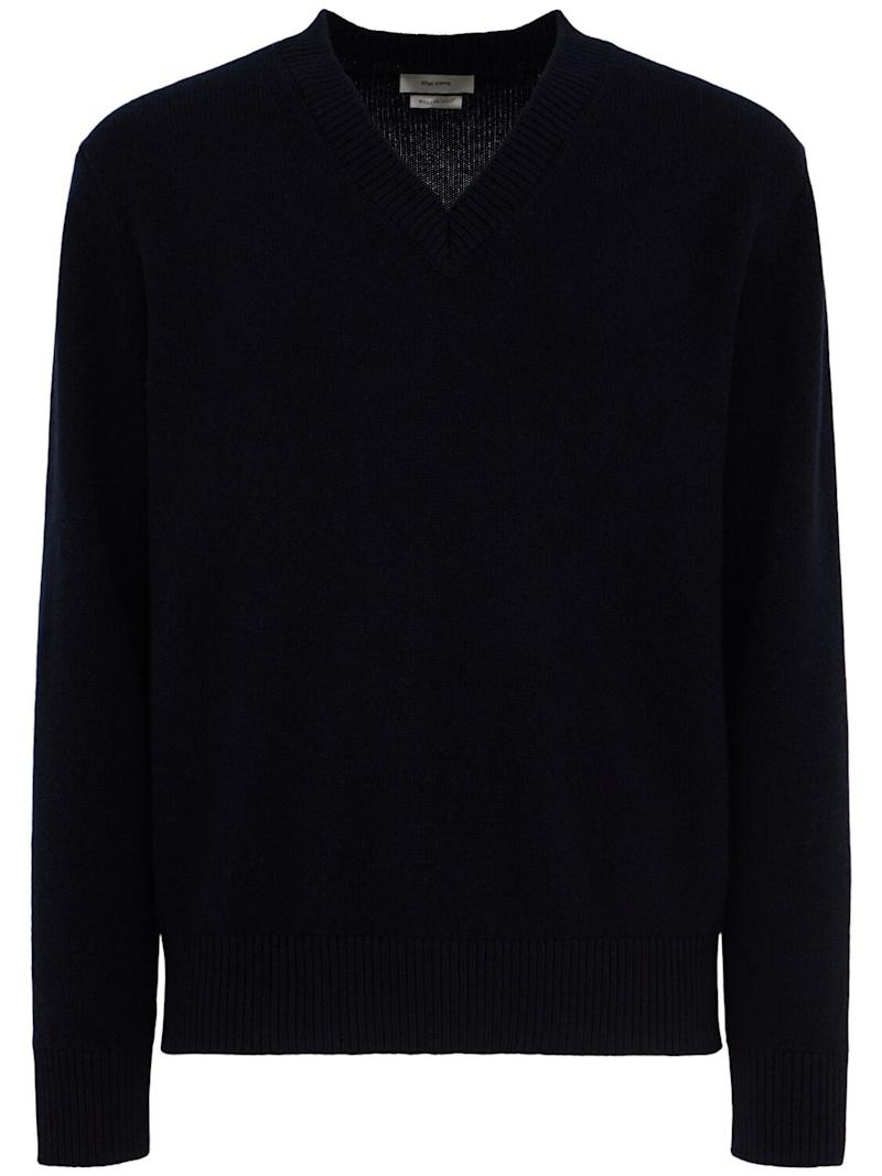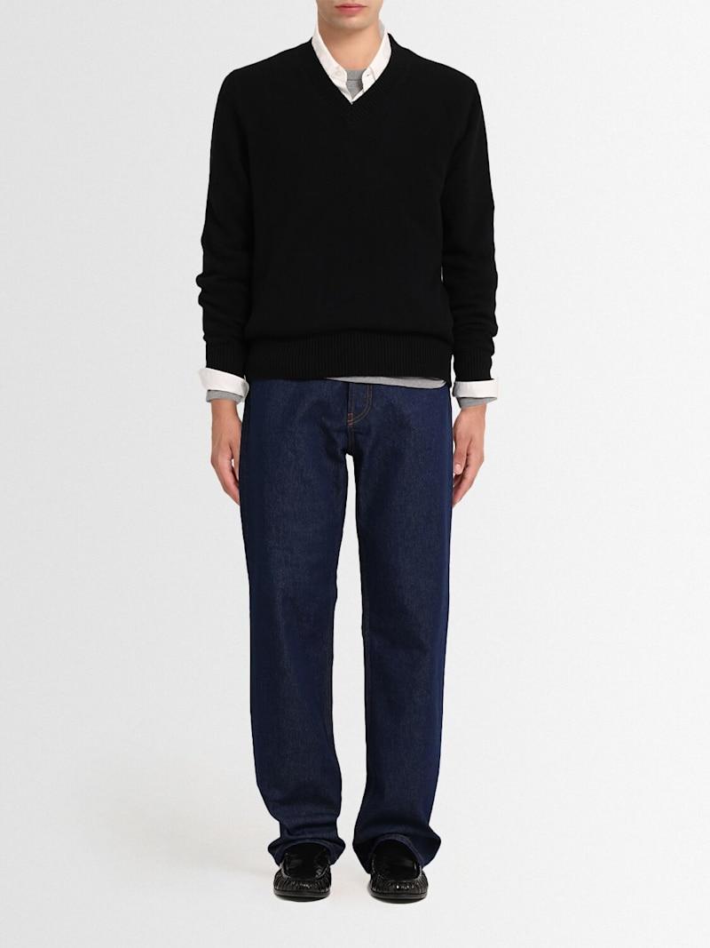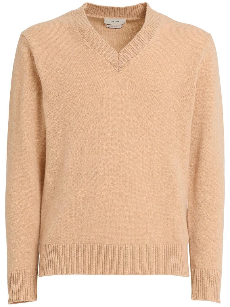 羊毛针织V领毛衣 - 灰色 - 男士 - The Core - 精细度:5 Gauge.