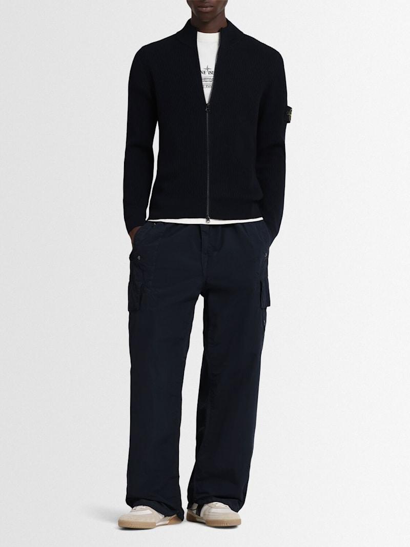 羊毛开衫 - 黑色 - 男士 - Stone Island - 正面拉链开合.