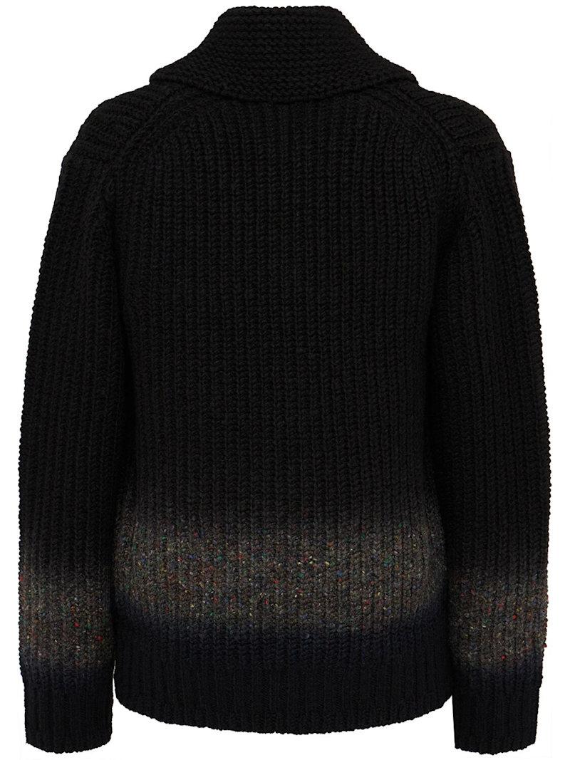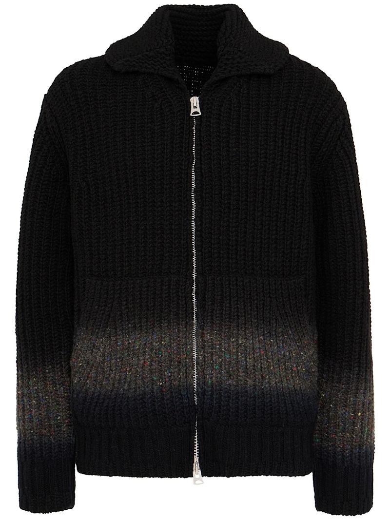 成衣染色羊毛针织开衫 - 黑色 - 男士 - Sacai - 正面拉链开合.