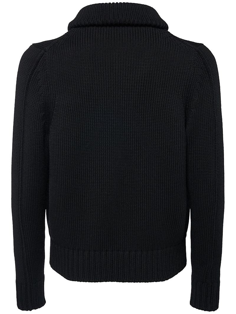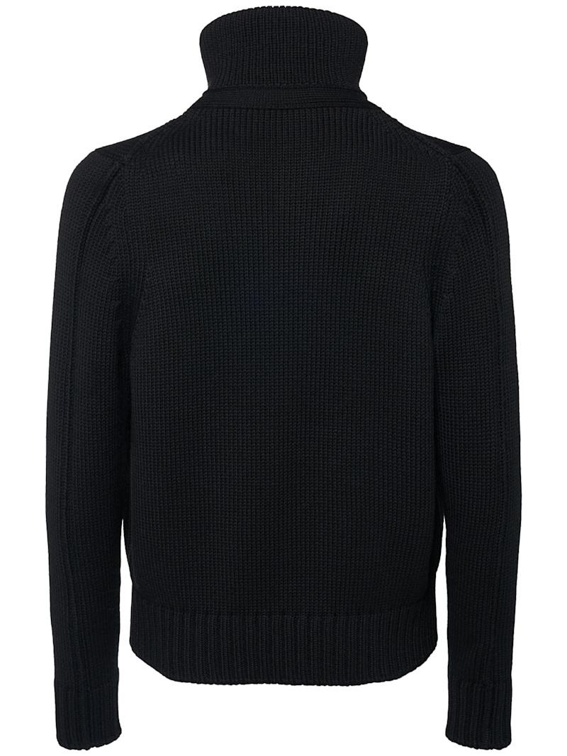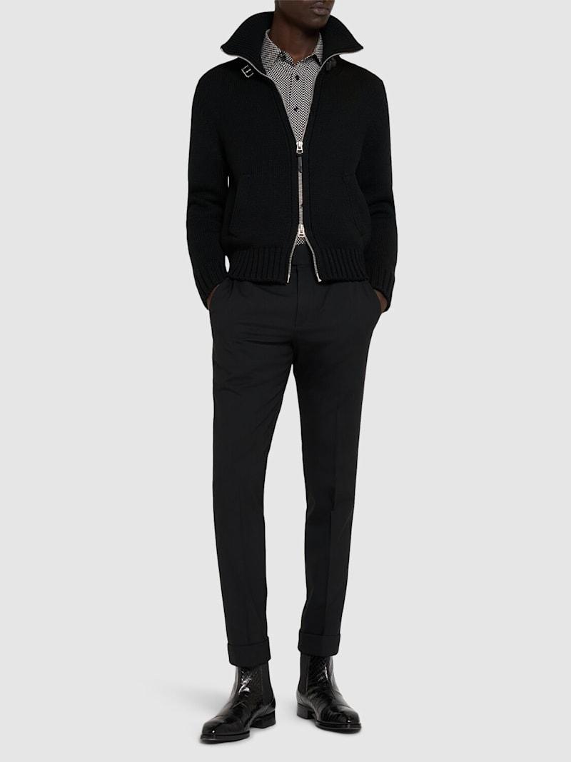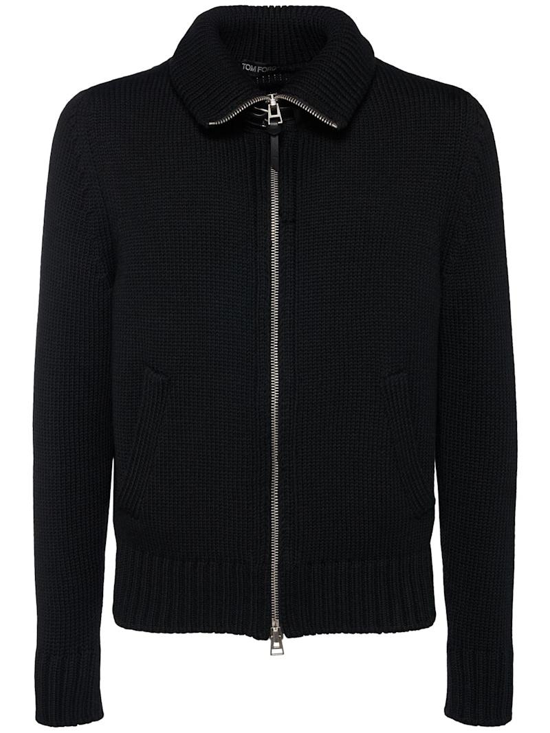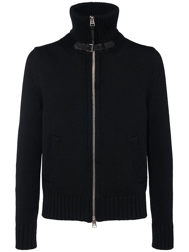 羊毛全长拉链开合开衫 - 黑色 - 男士 - Tom Ford - 领口搭扣开合可调节束带.