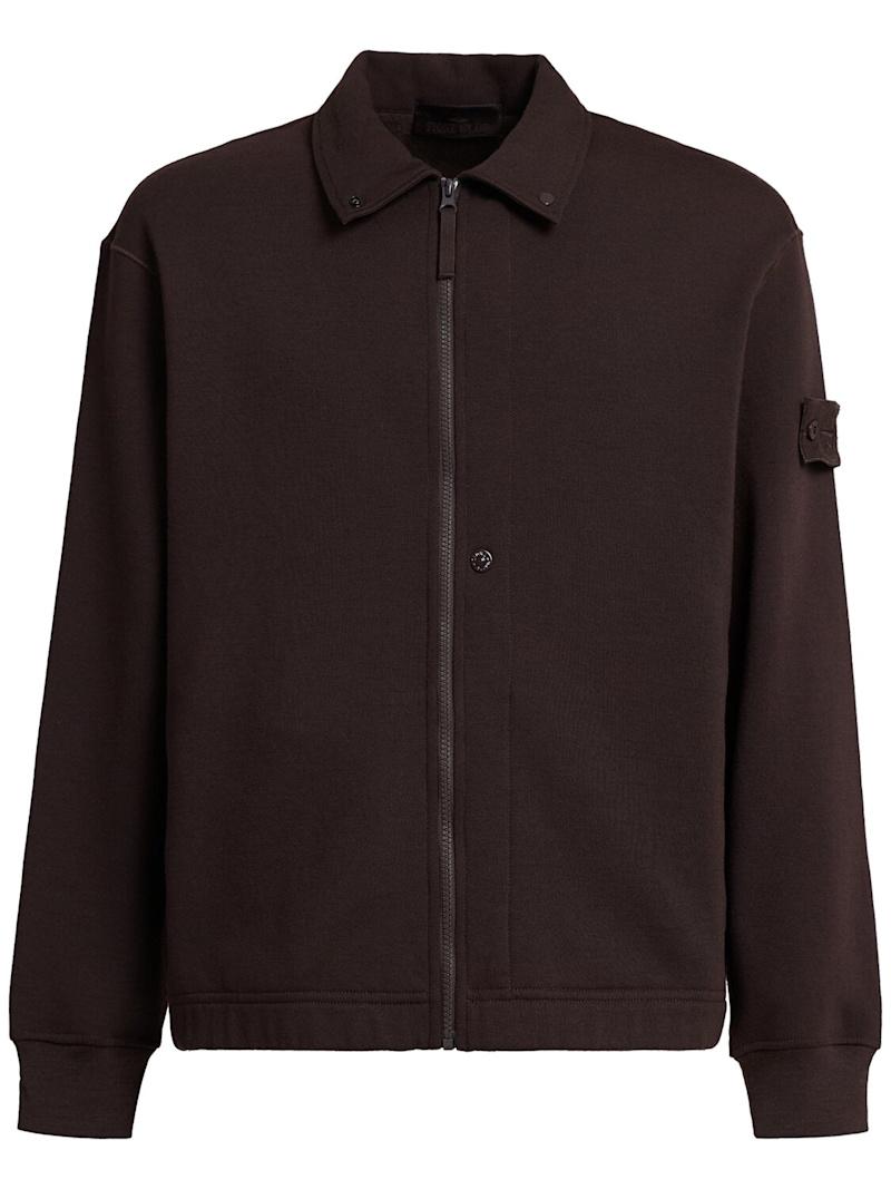 羊毛&棉拉链开合开衫 - 深棕色 - 男士 - Stone Island - 正面拉链开合.