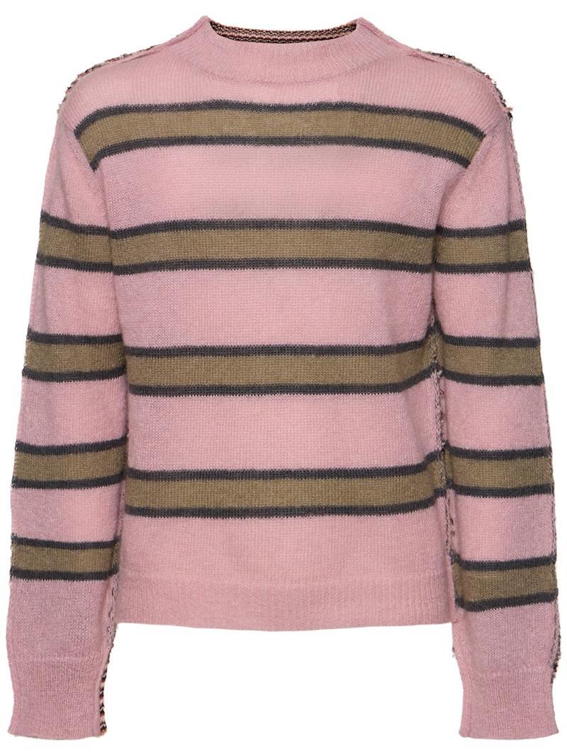 混合条纹圆领毛衣 - Pink Soft - 男士 - Marni - 罗纹领口、袖口和下摆.