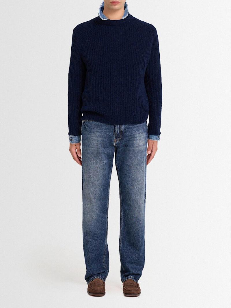 羊毛英式罗纹针织圆领毛衣