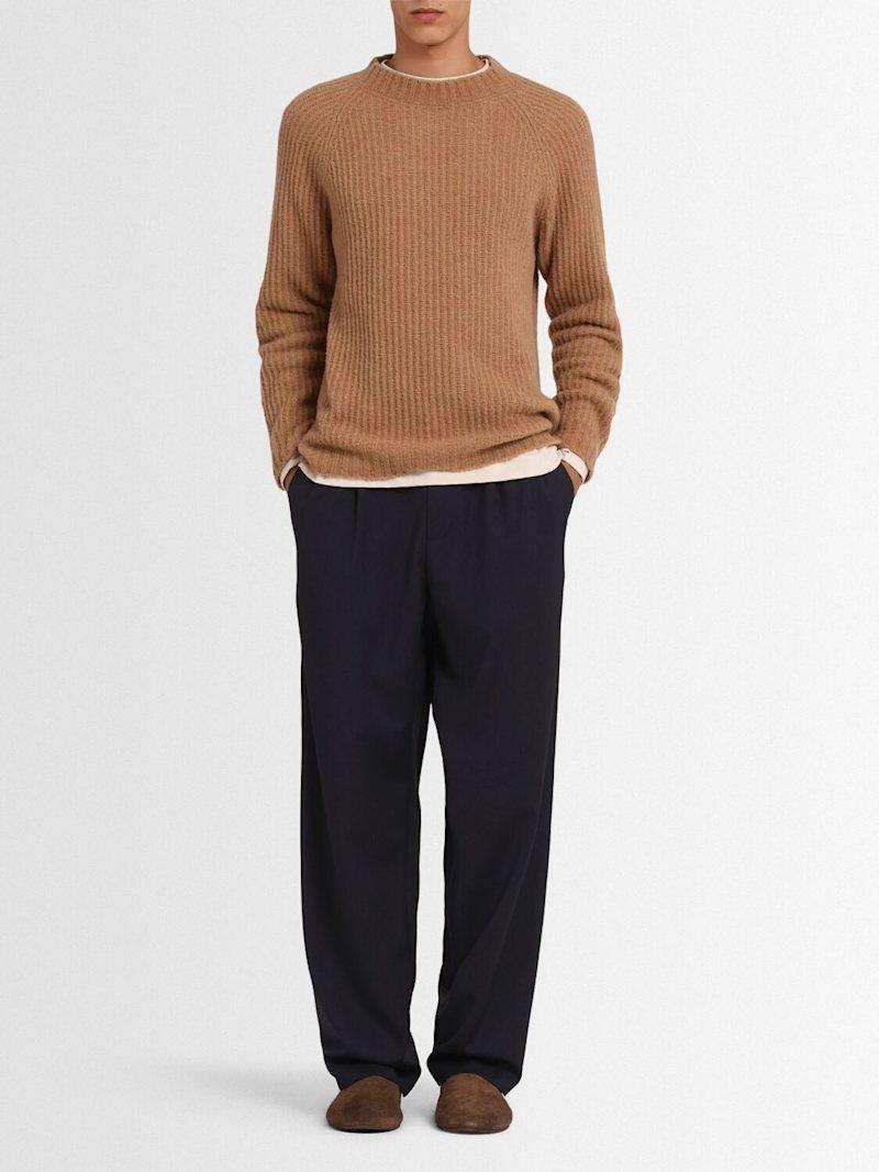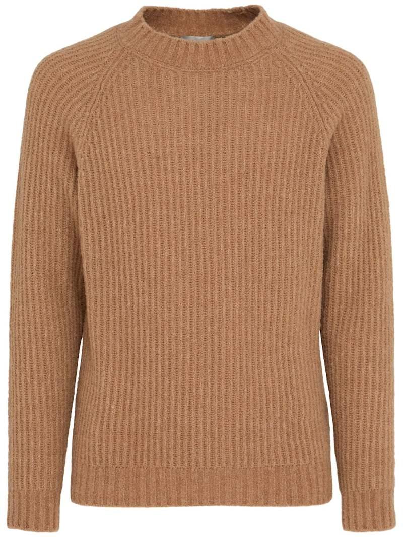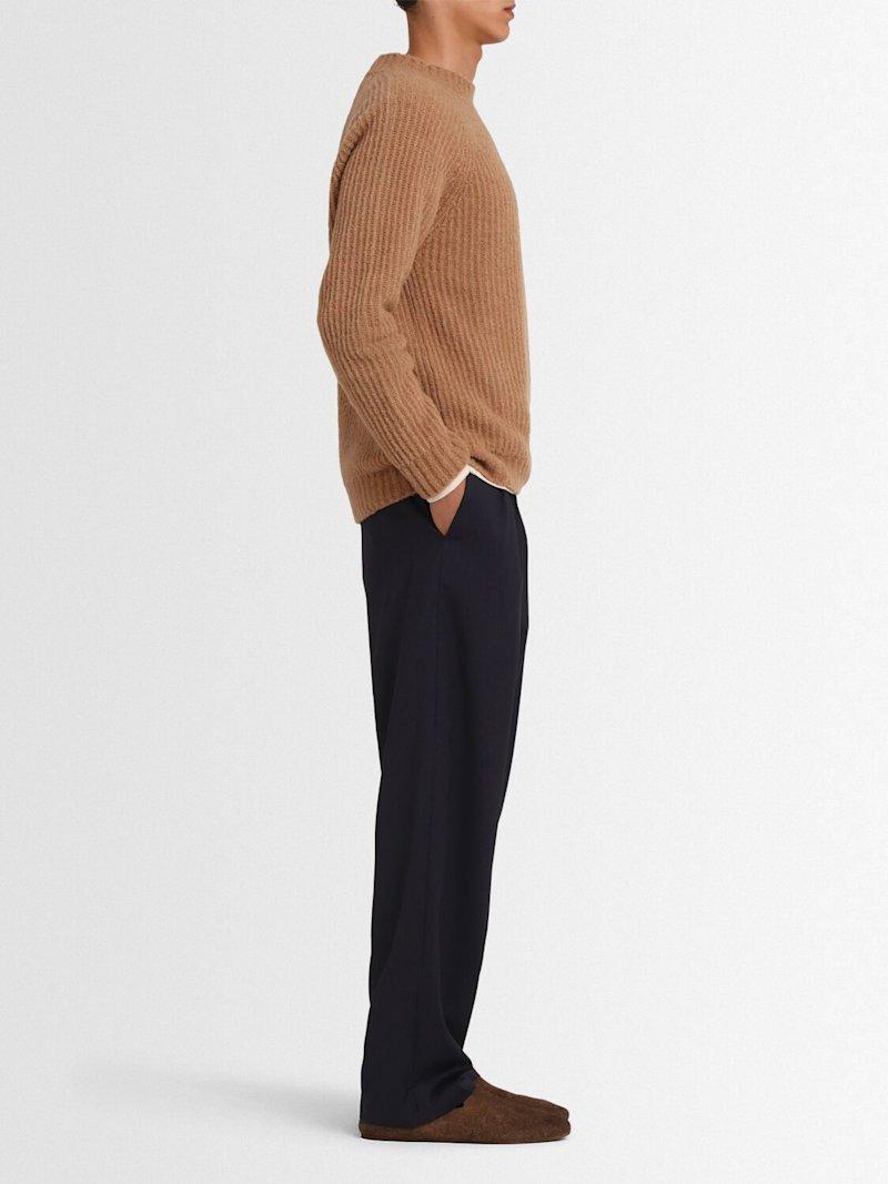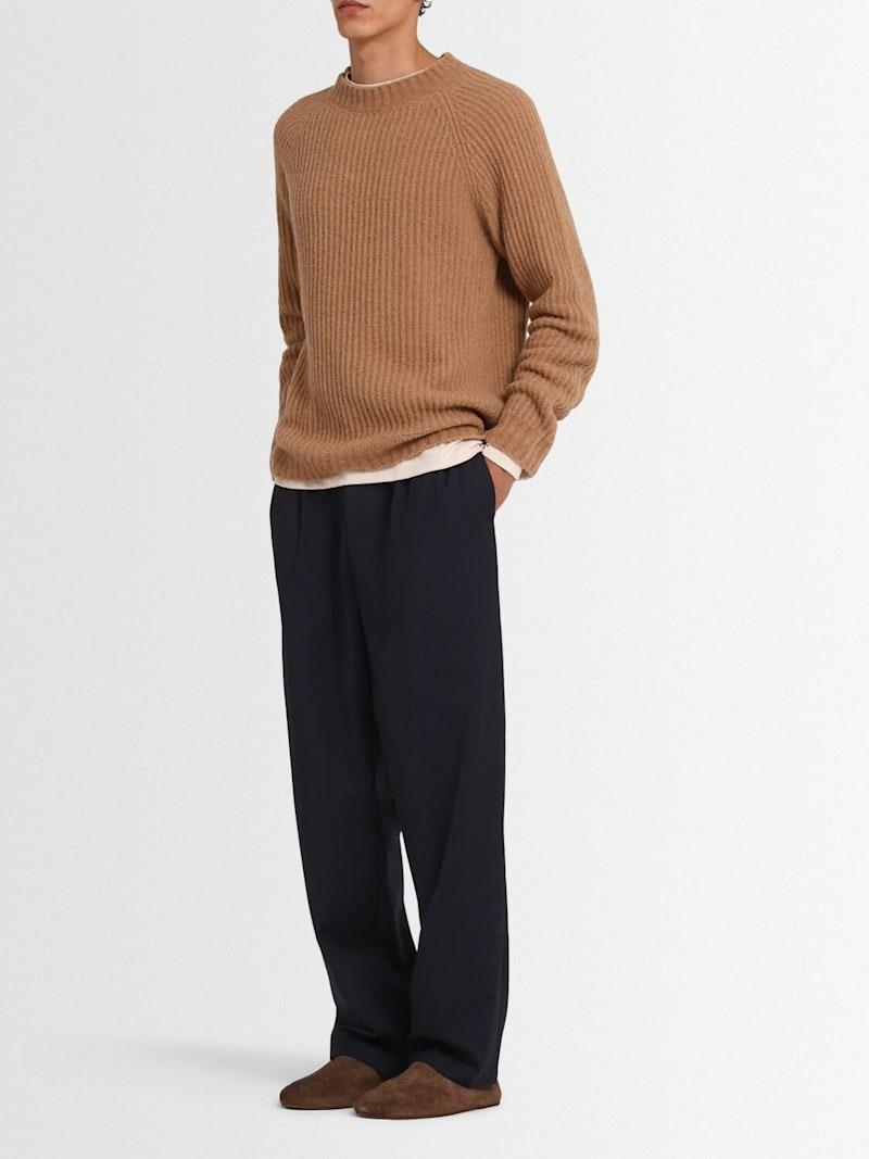 羊毛英式罗纹针织圆领毛衣 - 驼色 - 男士 - The Core - 精细度:5 Gauge.
