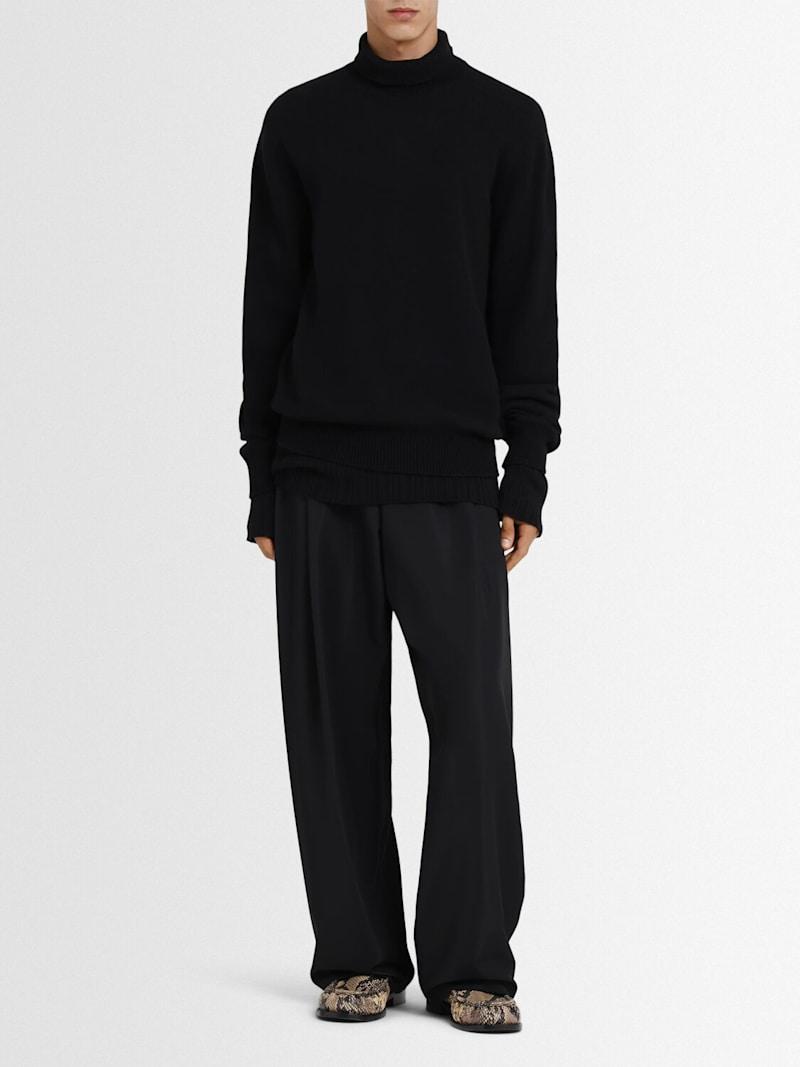 针织高领毛衣 - Nero/Black - 男士 - Laneus - 罗纹领口、袖口和下摆