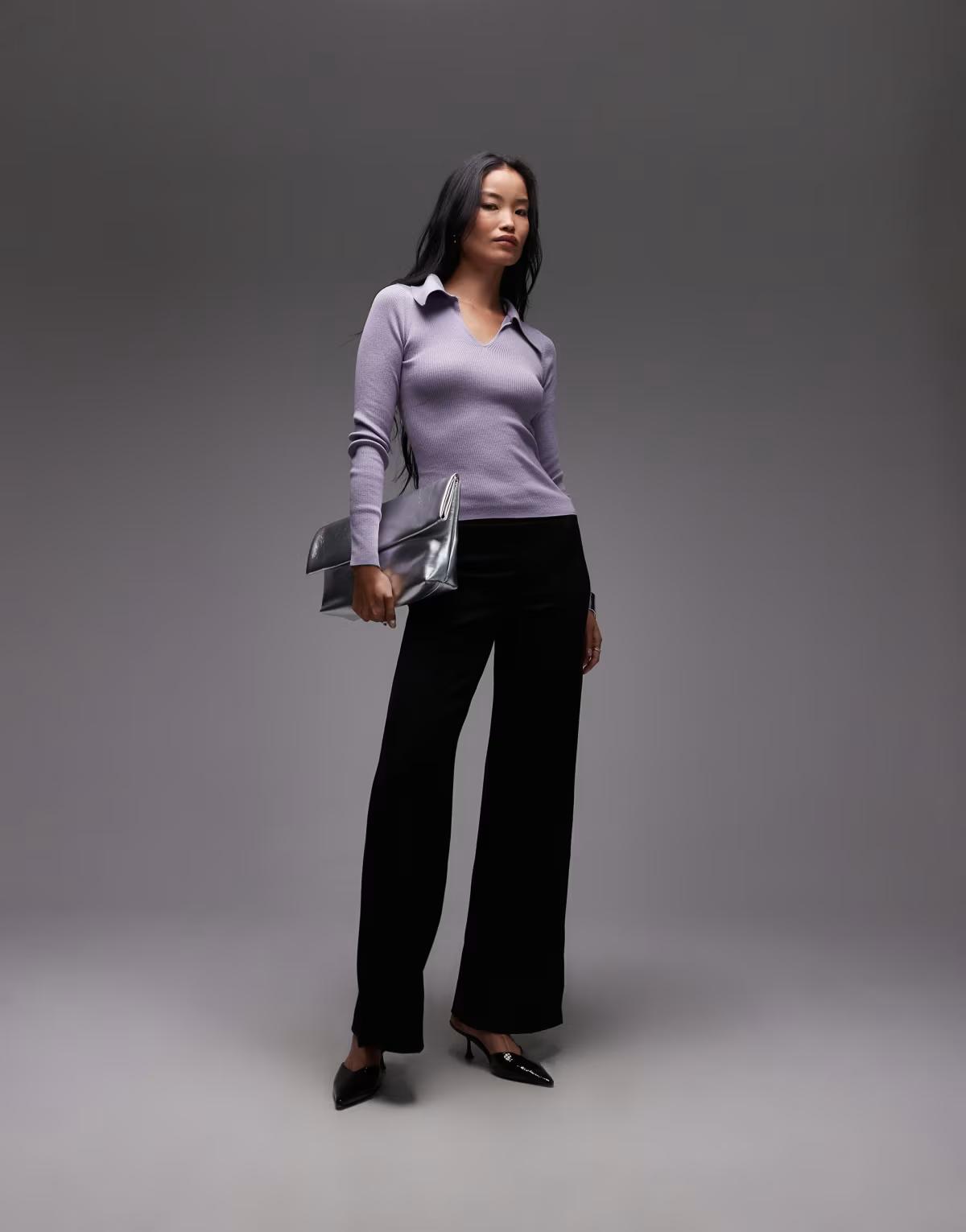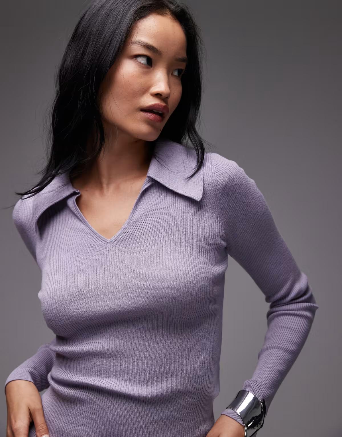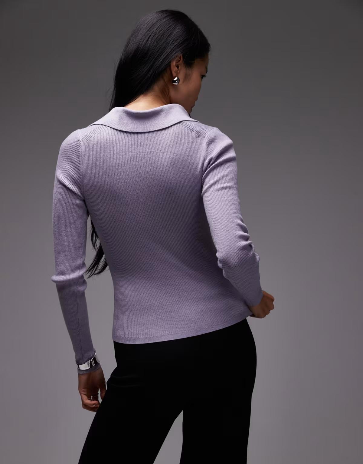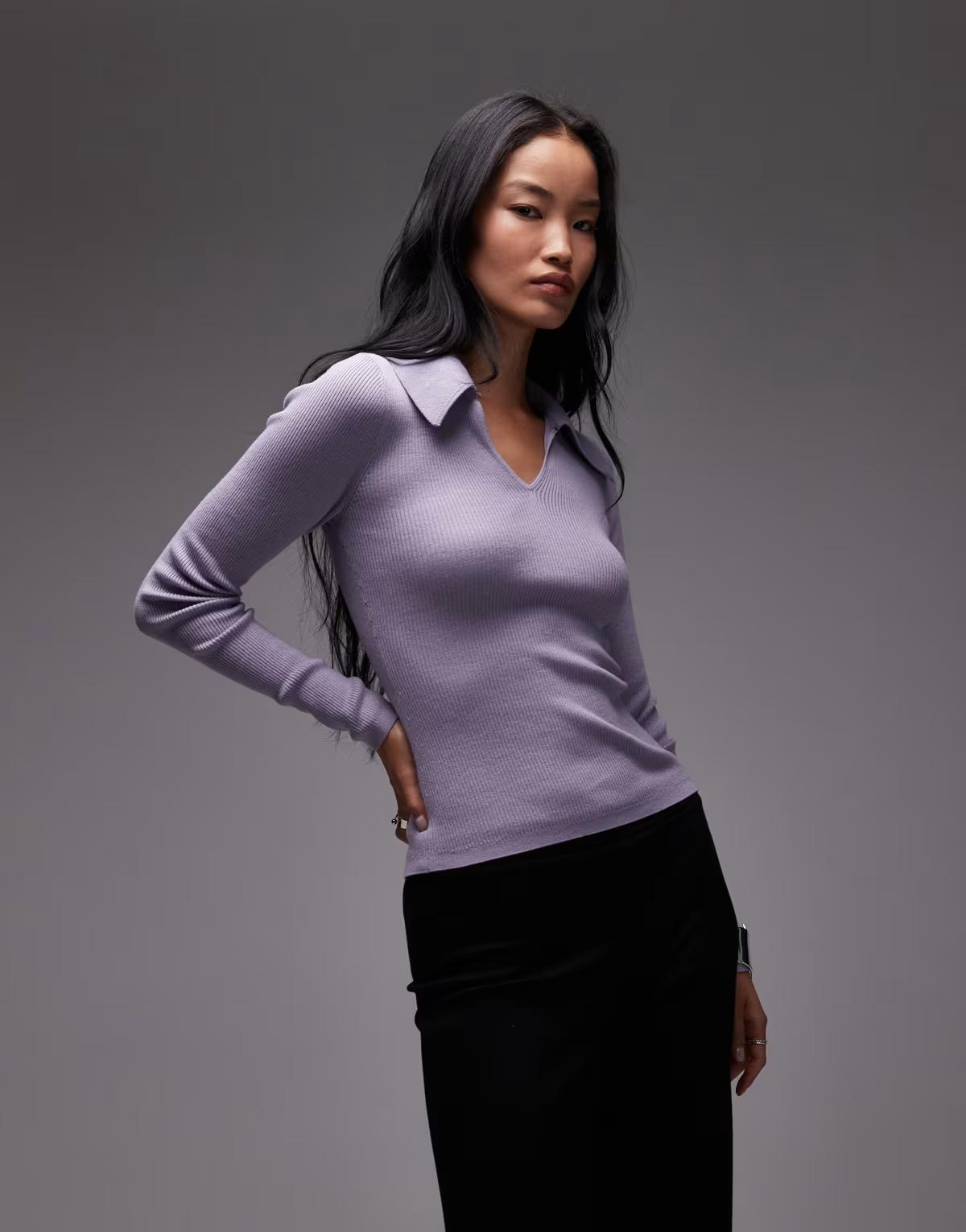 & Other Stories wool blend knitted top in lilac with contrast keyhole collar