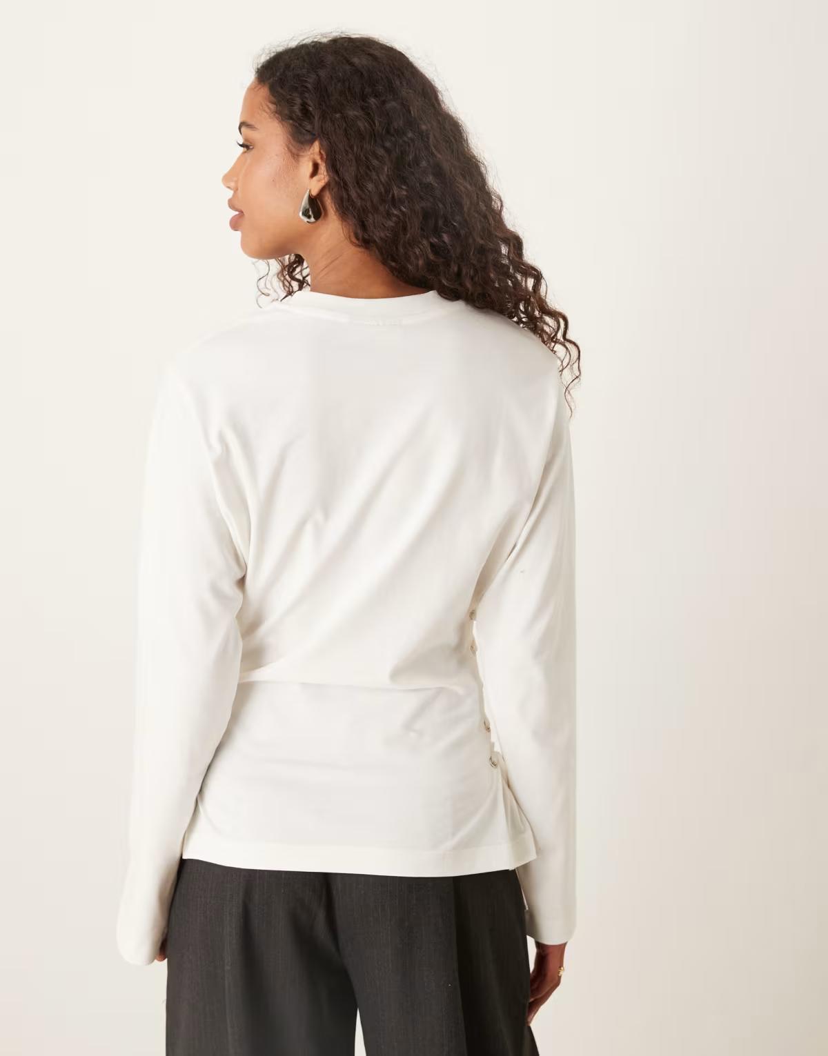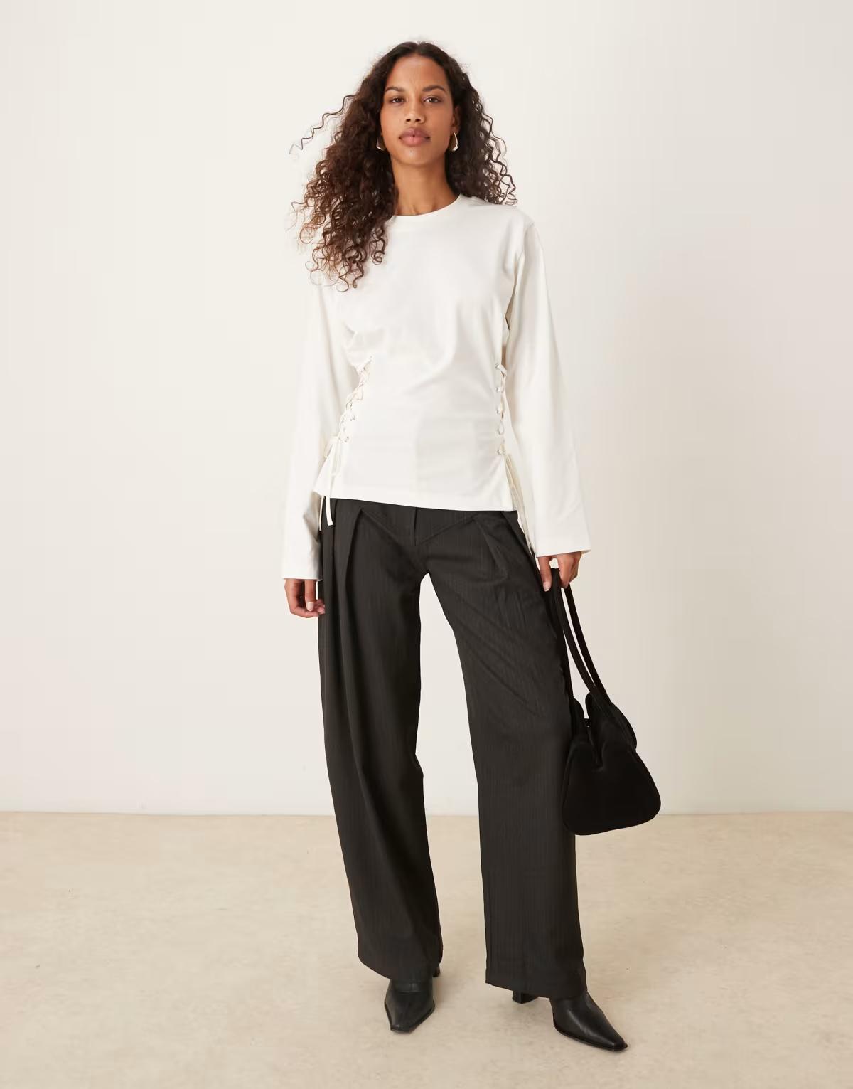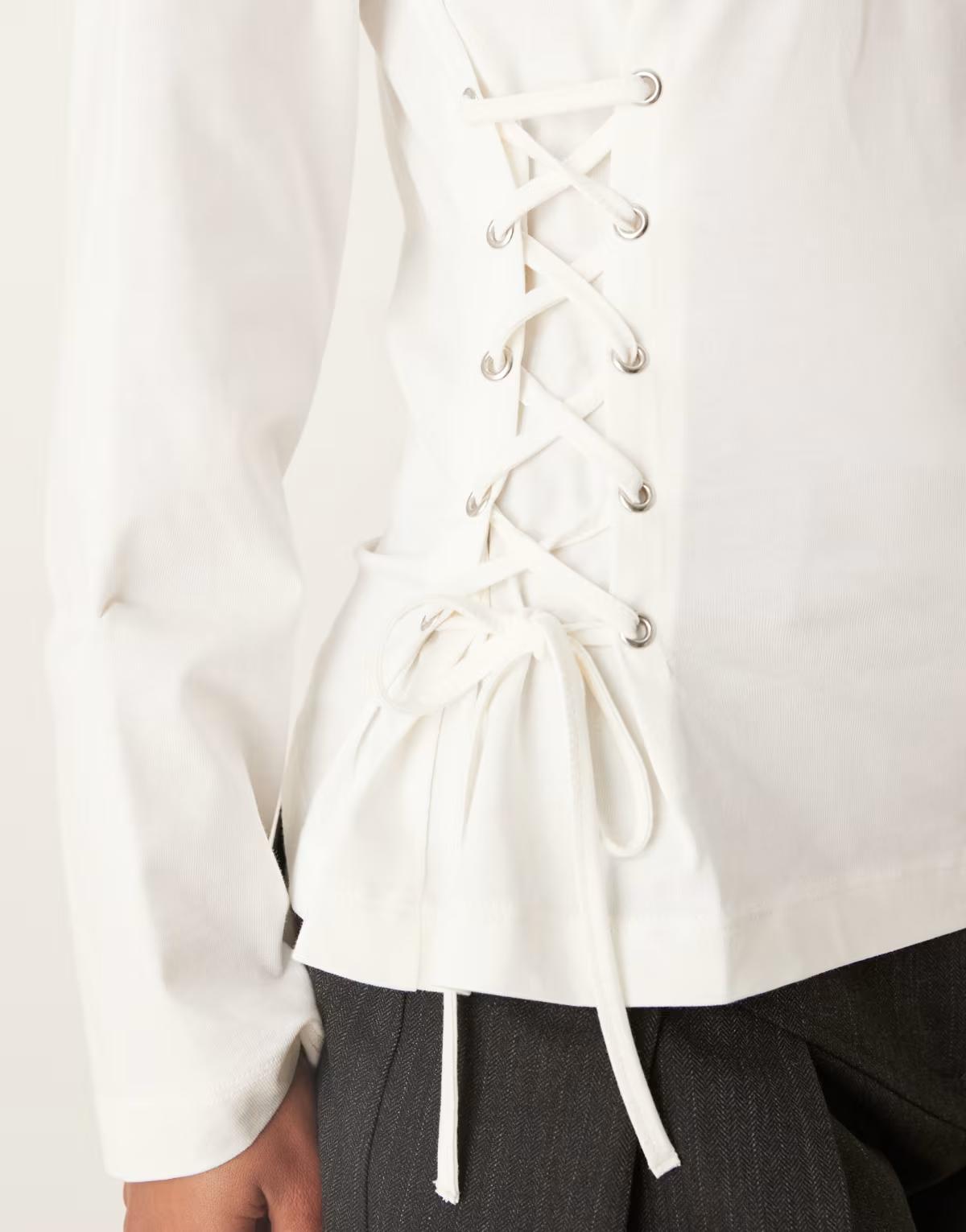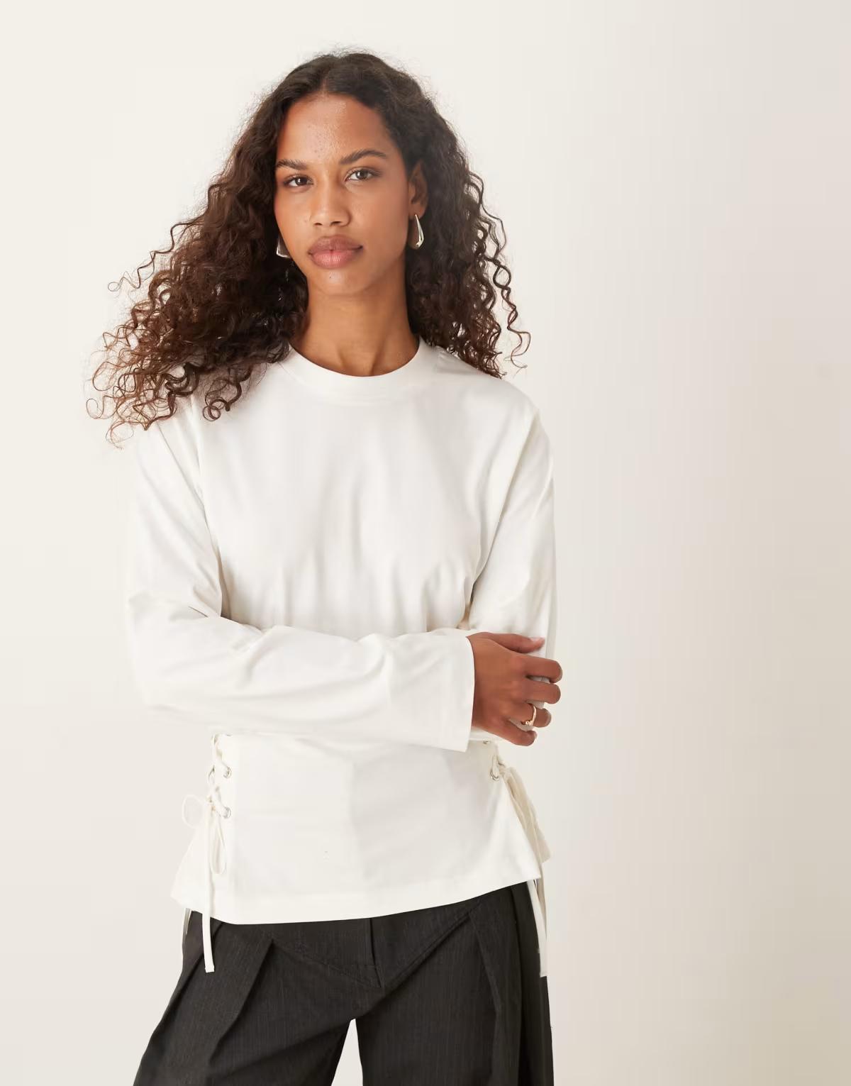 ASOS DESIGN lace up side detail long sleeve t-shirt in cream