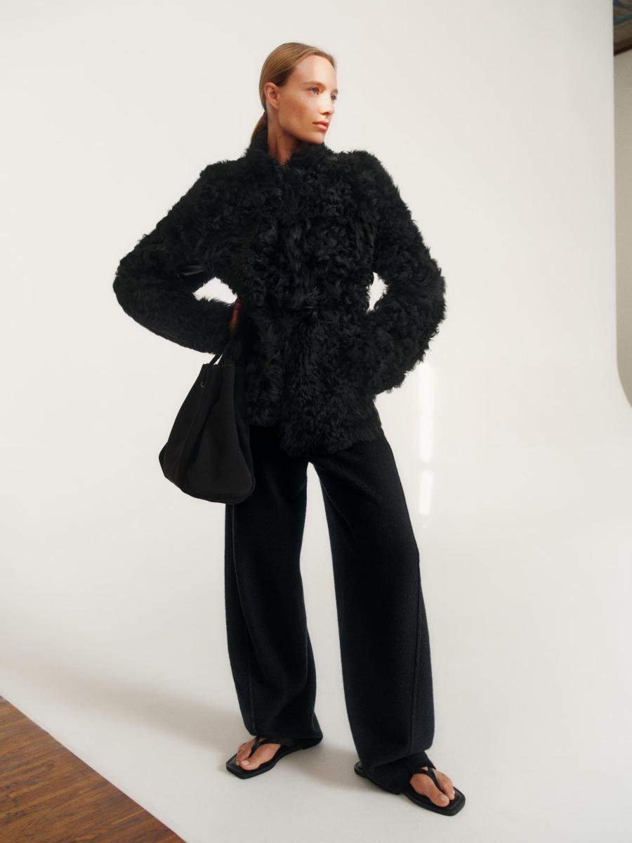 Shearling jacket with leather panels inside the sleeves for comfort, a hook-and-eye fastening at the centre front, and pockets in the side seams.ARKET/Women's clothes/Women's coats and jackets/Women's jackets