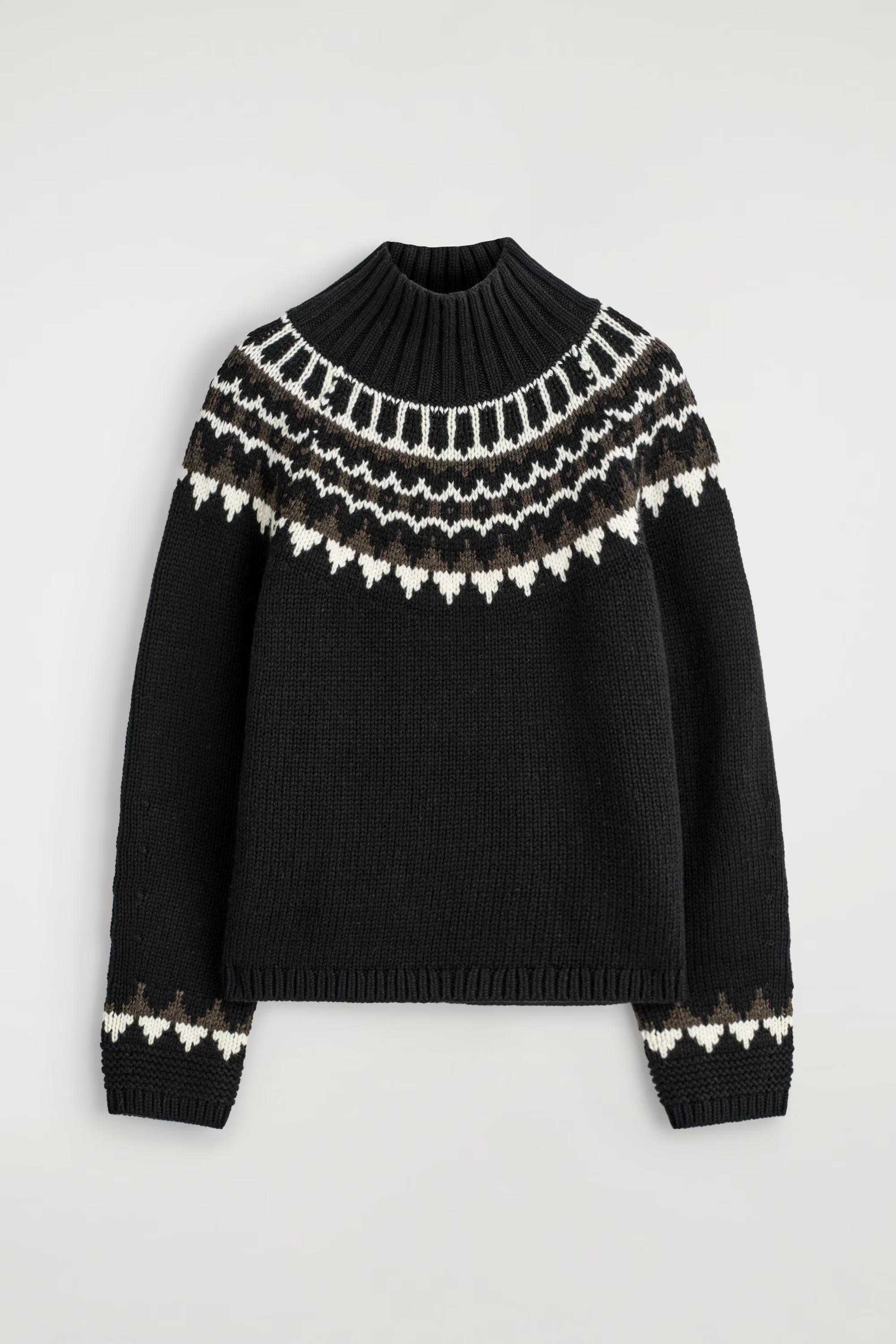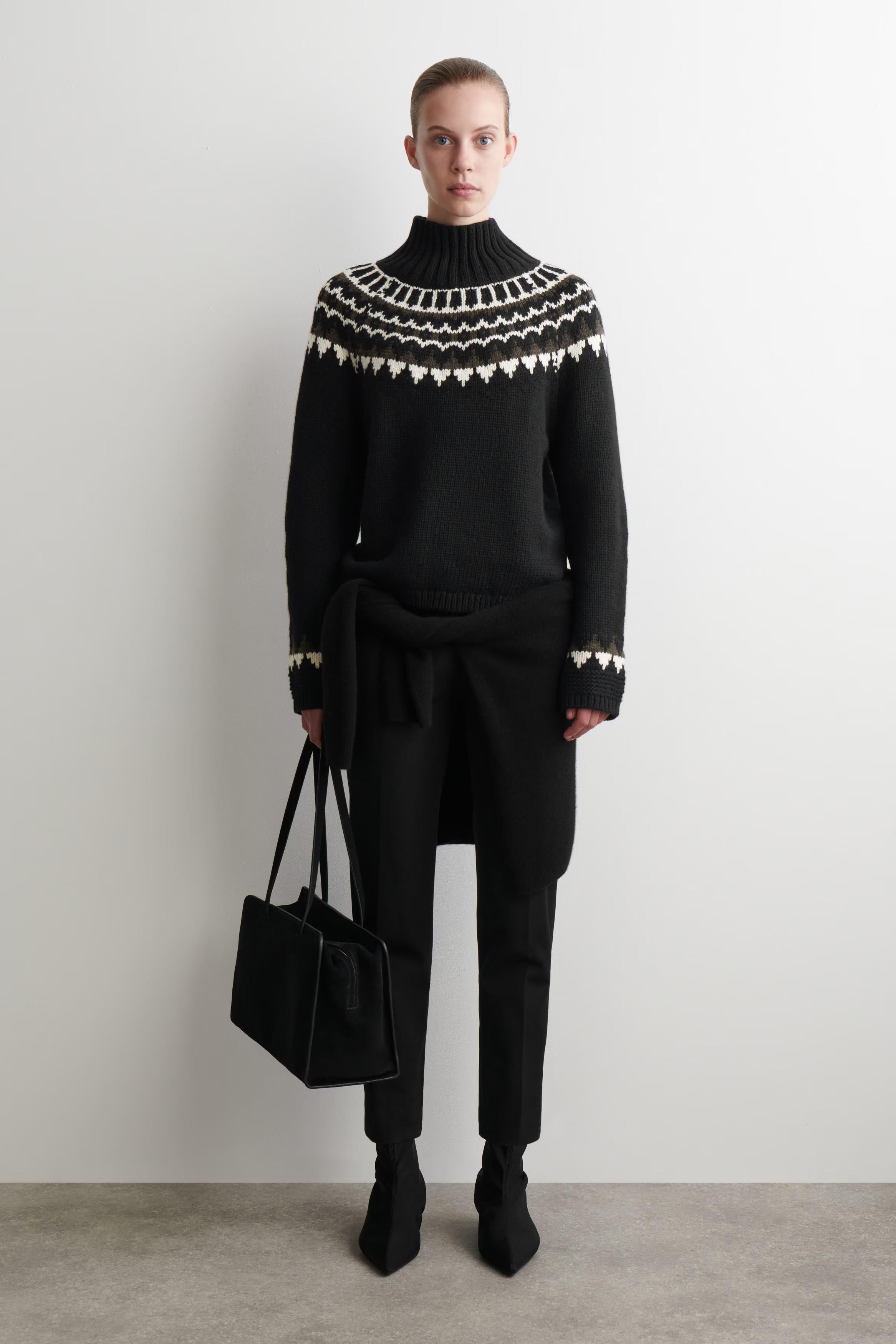 This season, the womenswear team reimagine heritage codes through a modern lens. Offered in a subdued cream tone, this jumper is made from merino wool with hints of cashmere for a luxurously soft hand feel and patterned with a refined fairisle motif. The funnel neck, cuffs and hem are finished with ribbed trims.\u0026nbsp;Regular fitThis product contains Responsible Wool Standard TE-00047206 (RWS) wool fibre from farms certified to animal welfare and land-management requirements\u0026nbsp;Shell: 90% Merino wool, 10% GCS Cashmere. Excluding trims / Machine wash\u0026nbsp;Back length of size S is 58cm / Model wears a size S
