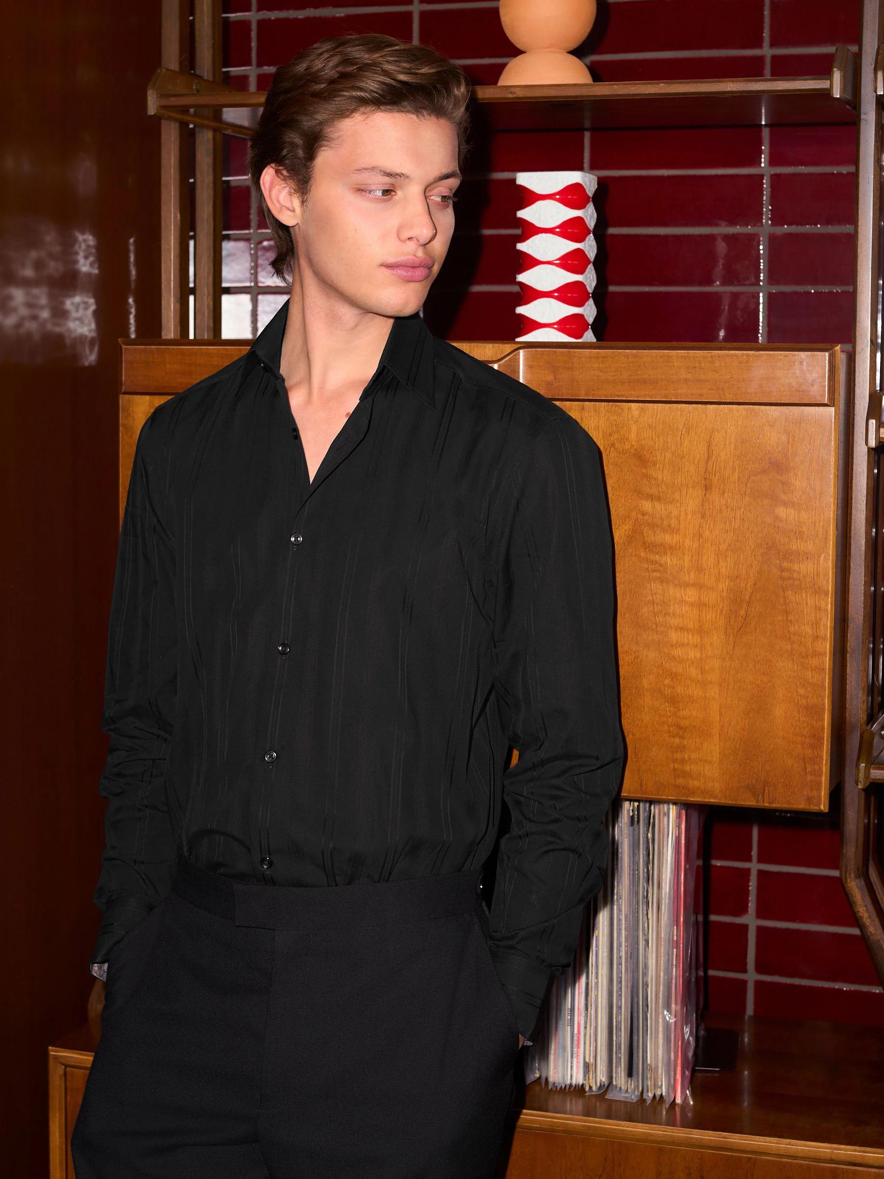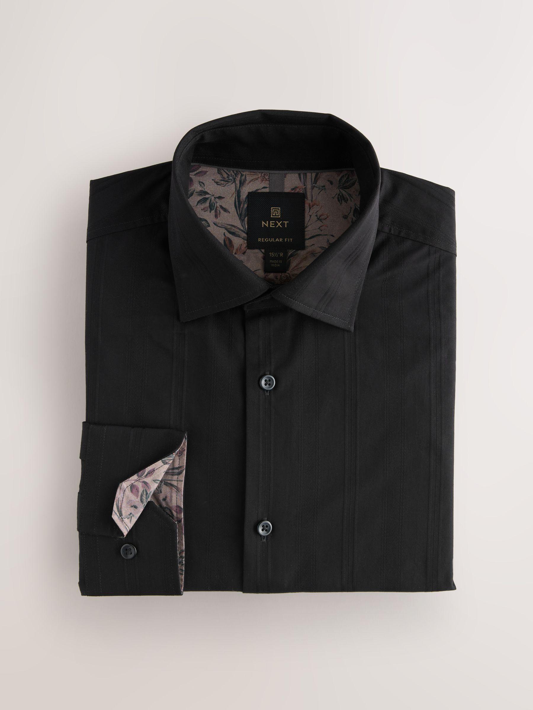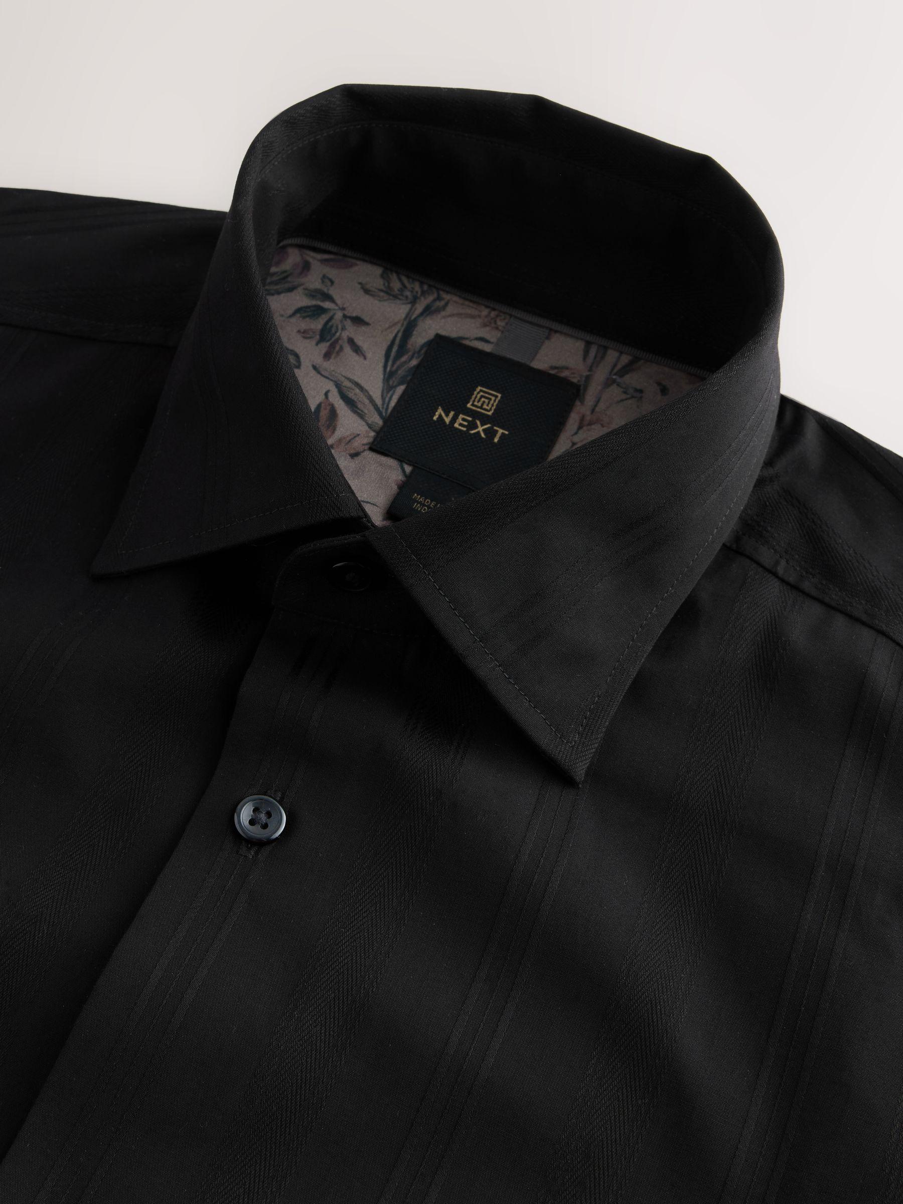 Black Self Stripe Regular Fit Premium 100% Cotton Textured Shirt