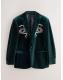 Green Regular Fit Snake Embroidered Velvet Blazer