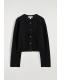 Refined silhouettes and luxuriously tactile yarns define the COS knitwear collection. Rendered in classic black, this crew-neck cardigan is made from premium merino wool that's boiled for texture and designed in a rounded shape with overlapping seams at the shoulders.\u0026nbsp;Regular fitButton closureThis product contains Responsible Wool Standard TE-00047206 (RWS) wool fibre from farms certified to animal welfare and land-management requirements\u0026nbsp;Shell: 100% Merino wool. Excluding trims / Dry clean\u0026nbsp;Back length of size S is 50cm / Model wears a size S
