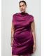 Tejido satinado. Efecto arrugado. Diseño corto. Diseño entallado. Cuello redondo. Mangas asimétricas. Fruncido lateral. Cierre de botón en el cuello. Disponible Plus. Esta prenda pertenece a nuestra colección de fiesta y evento, diseñada para elevar tus looks en ocasiones especiales