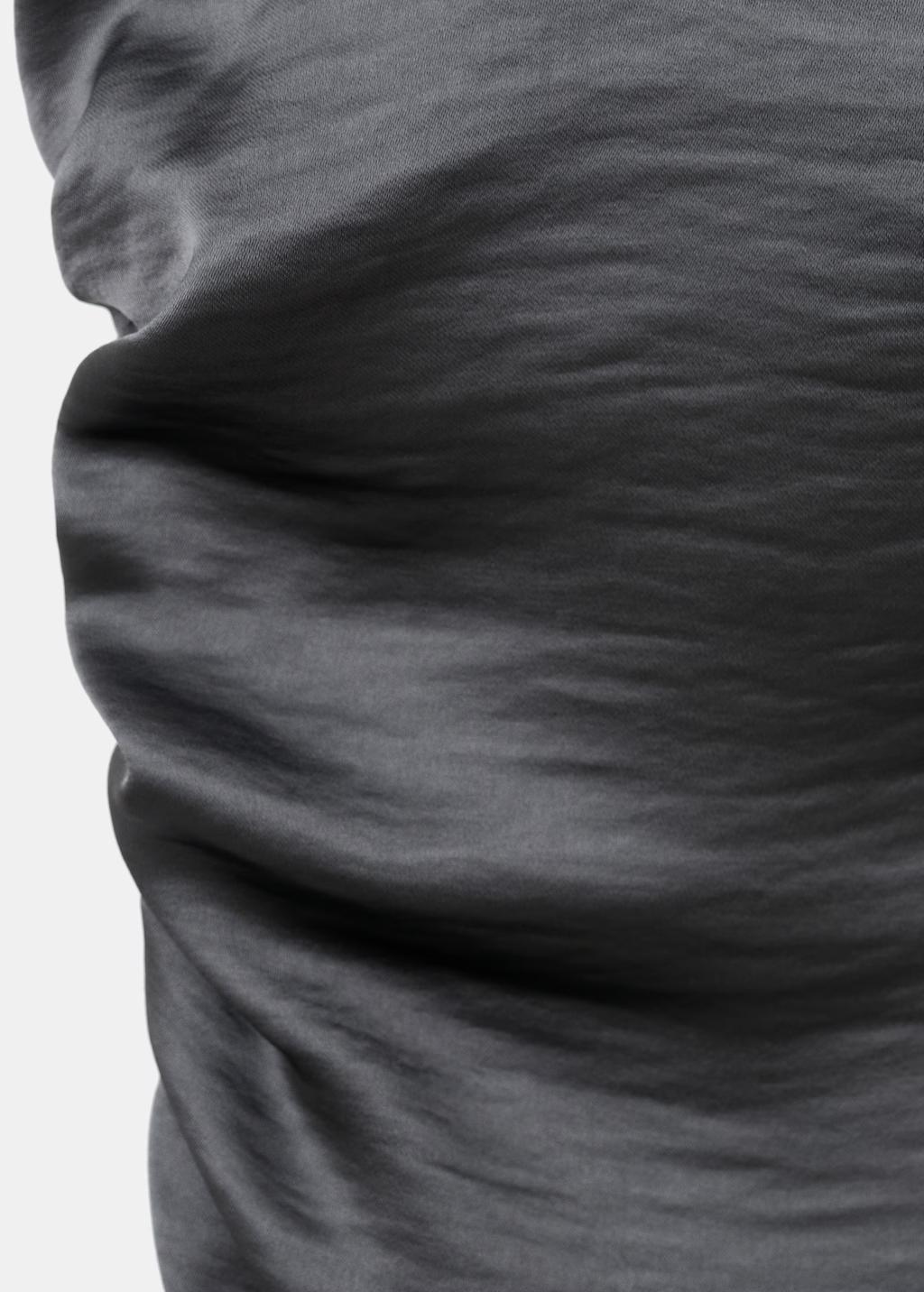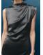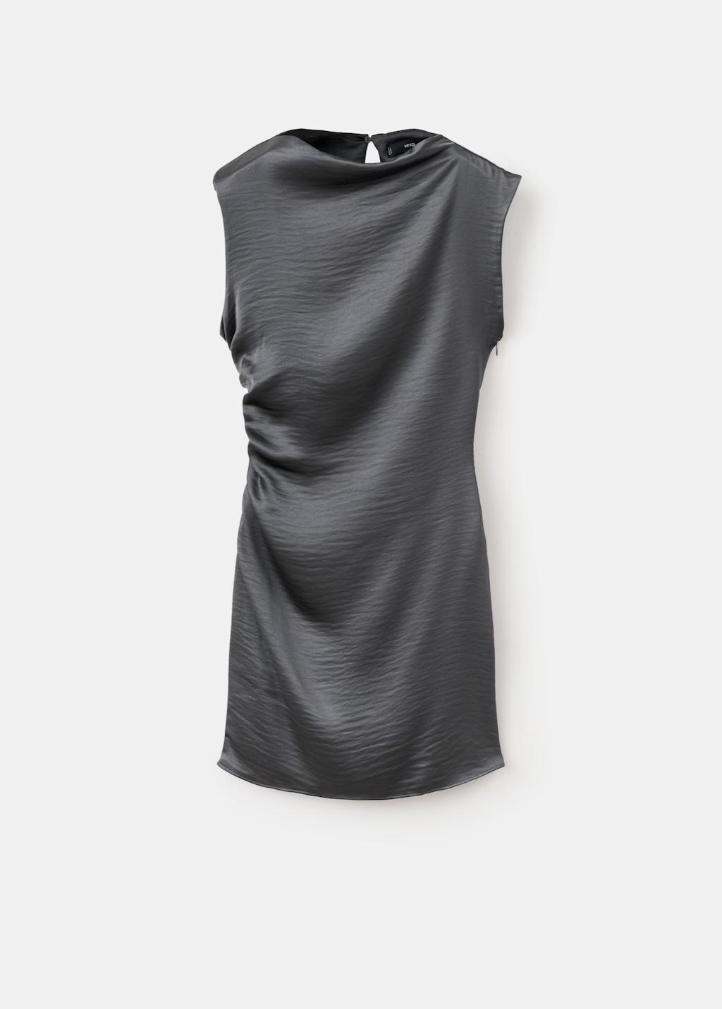 Tejido satinado. Efecto arrugado. Diseño corto. Diseño entallado. Cuello redondo. Mangas asimétricas. Fruncido lateral. Cierre de botón en el cuello. Disponible Plus. Esta prenda pertenece a nuestra colección de fiesta y evento, diseñada para elevar tus looks en ocasiones especiales